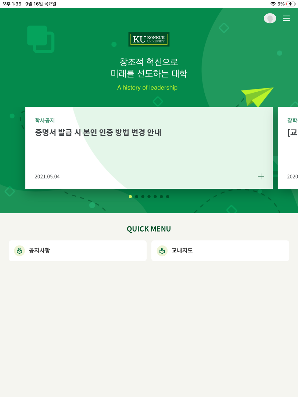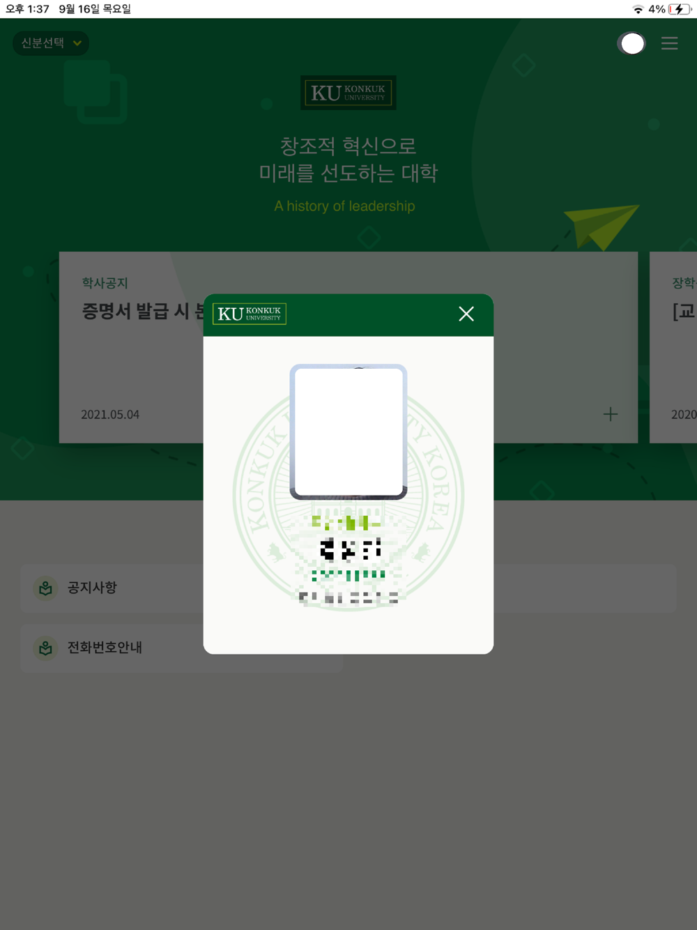 - 공지사항, 캠퍼스맵, 전화번호 안내