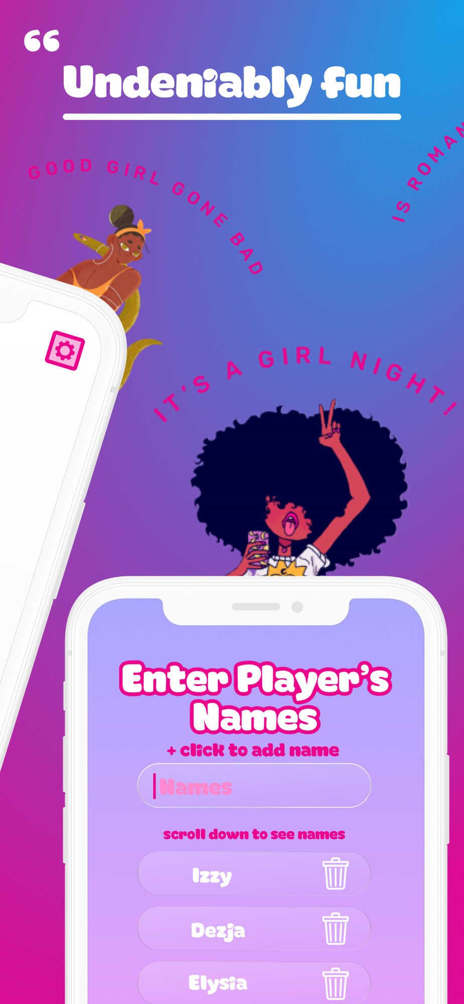 "Leave your boyfriend, past hookup, or crush at the door, cause it's a girls' night. Sisterhood is beautiful; let's get this night started right."
