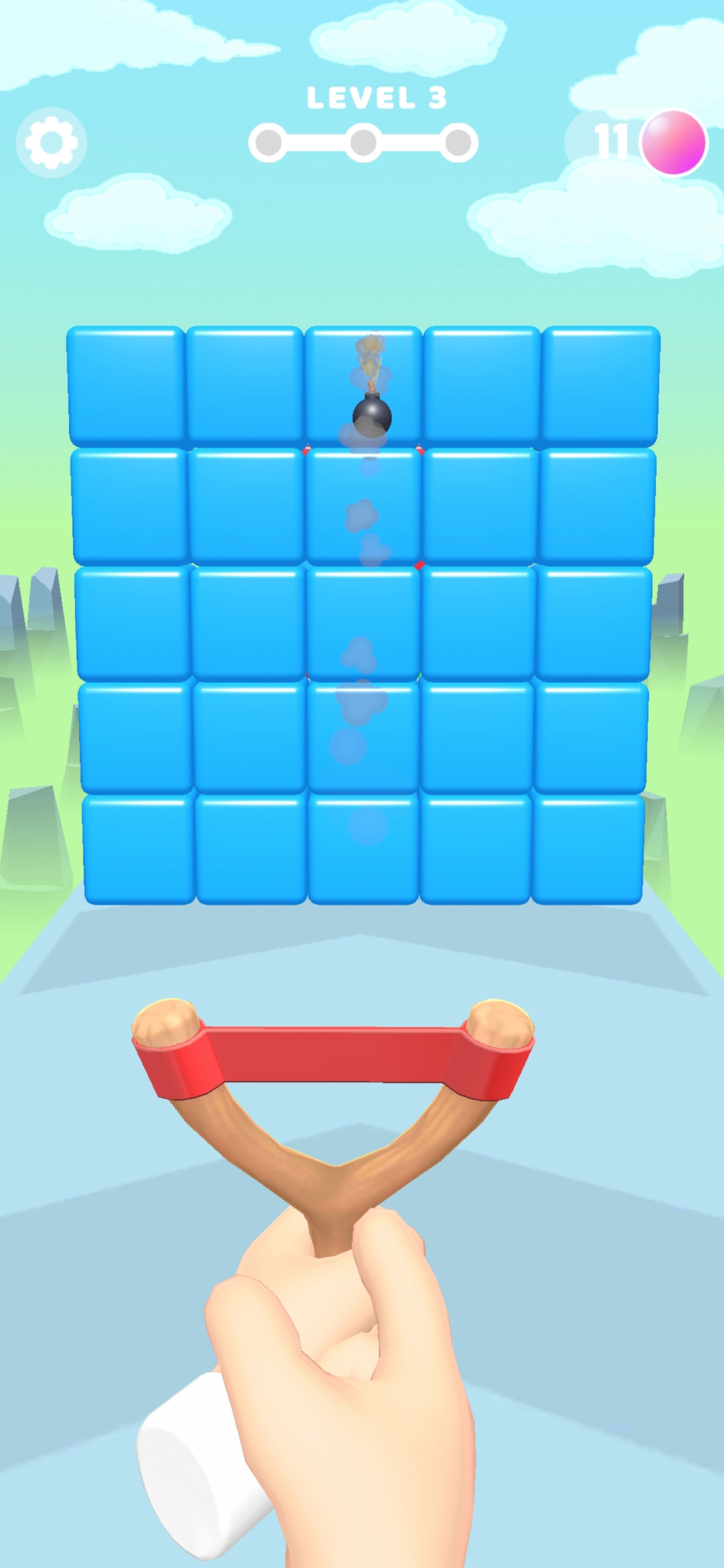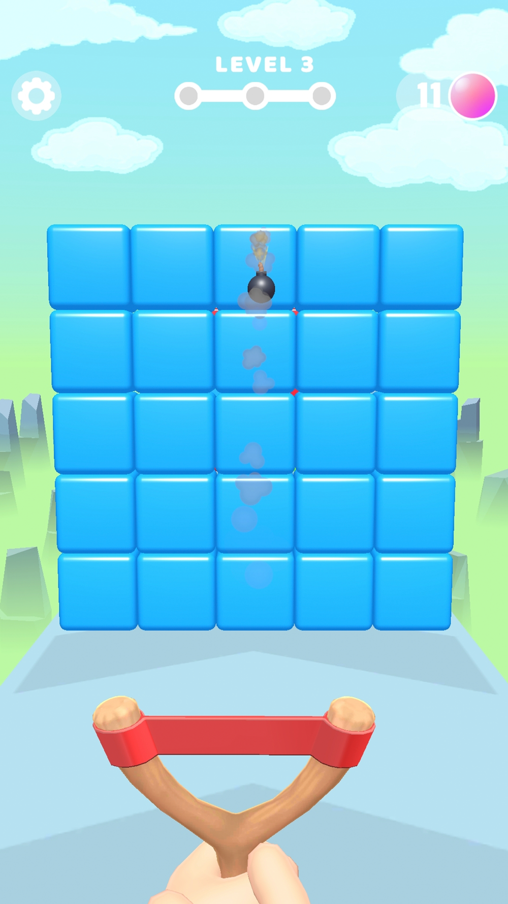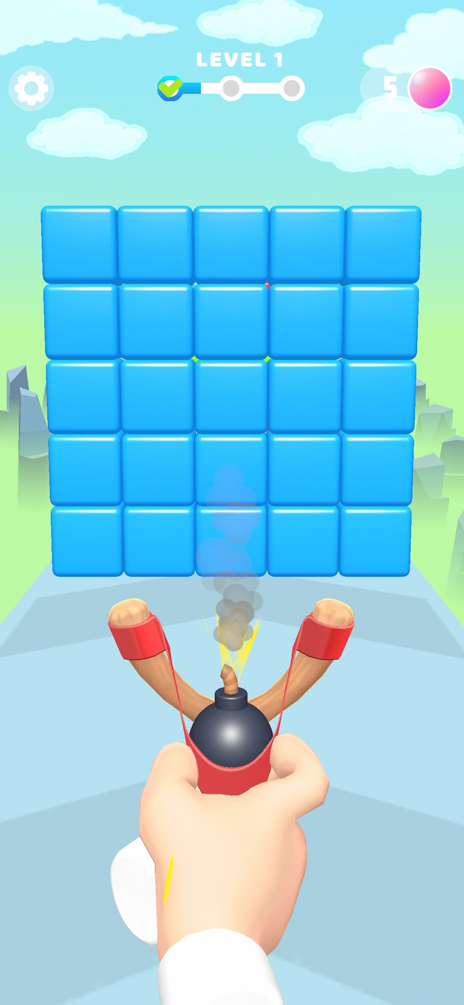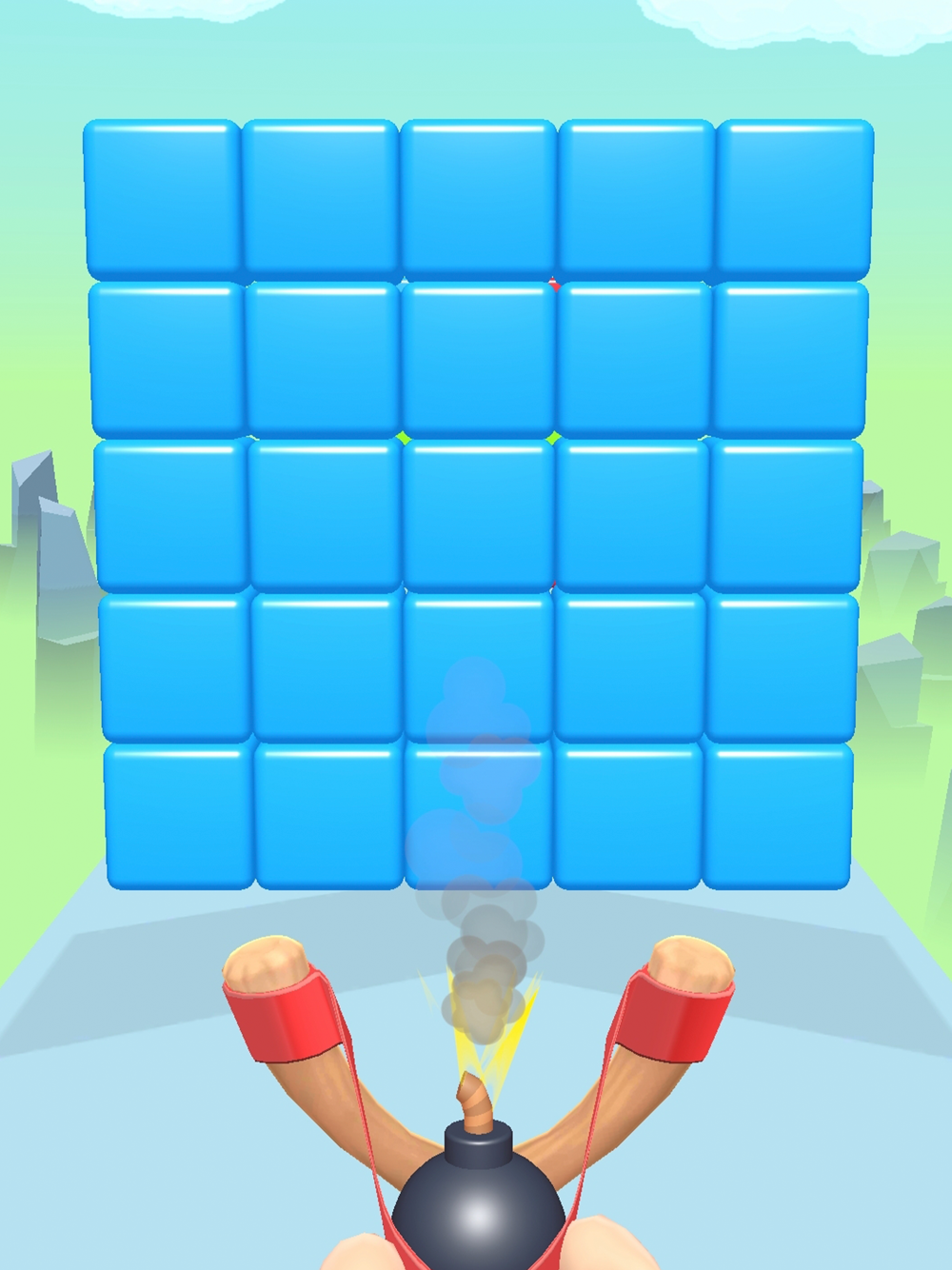 A game in which you need to paint a wall of multicolored blocks with slingshot shots. The task is to paint the wall so that it becomes monochrome. Once all the blocks have the same color, the wall collapses.