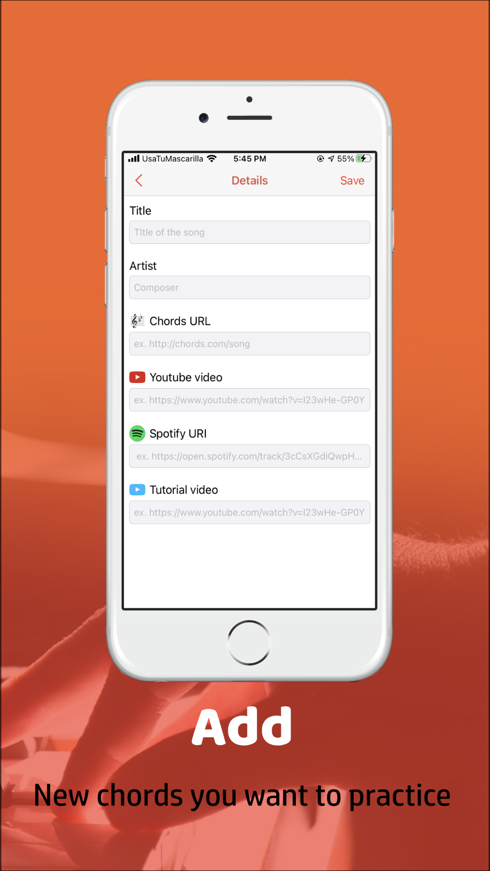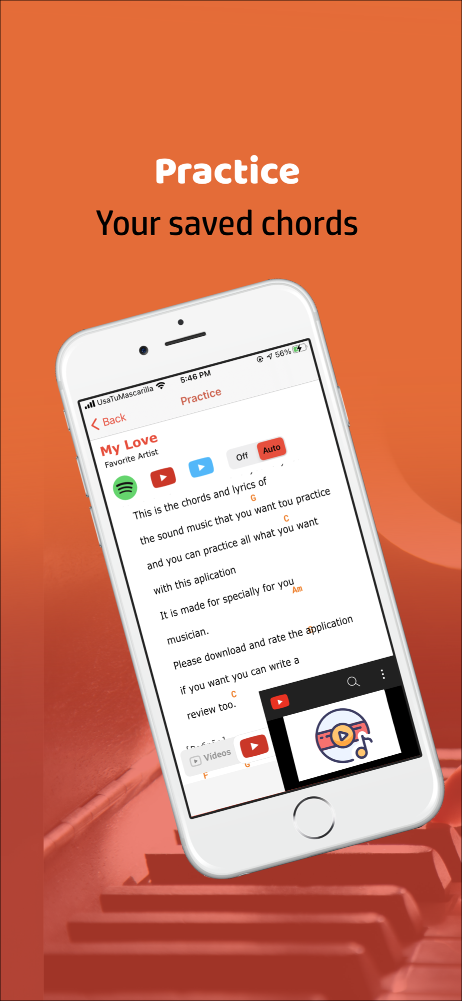 Chords bookmarks is a mobile application to store in an organized way the tablatures, chords, tutorials, videos and links to music of the songs that you need to practice as a musician.