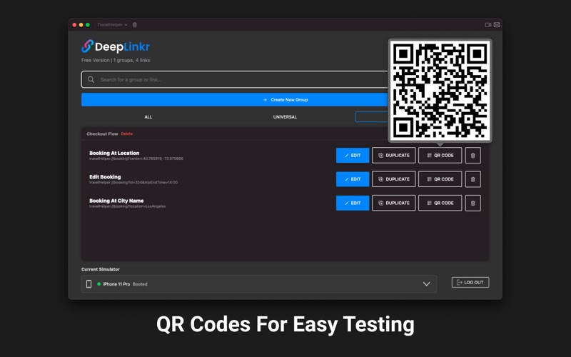 Plus, we'll generate QR codes for every link so you can easily test on your mobile device too. It couldn't be any easier to test different application lifecycle states and verify the behavior of your deep links.