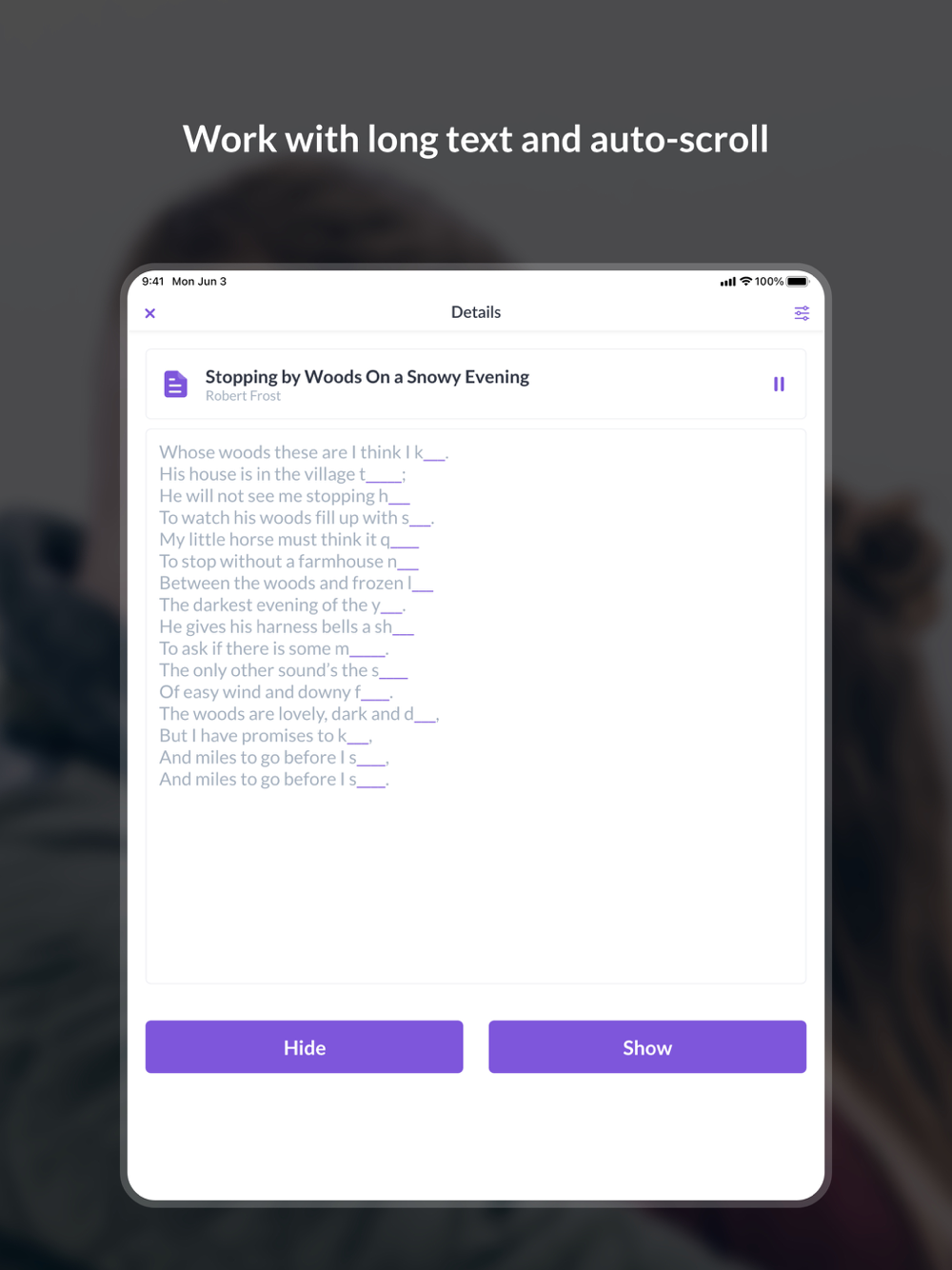 Memrise it app will help you to memorize any long text, drama script, poem, the answer to any questions, long essay, short story, and any text that you want to remember.