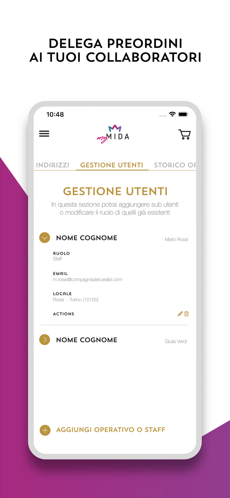 Crea fino a tre utenze oltre alla tua per delegare i preordini sulla piattaforma e rendere tutti i flussi di lavoro più snelli e veloci