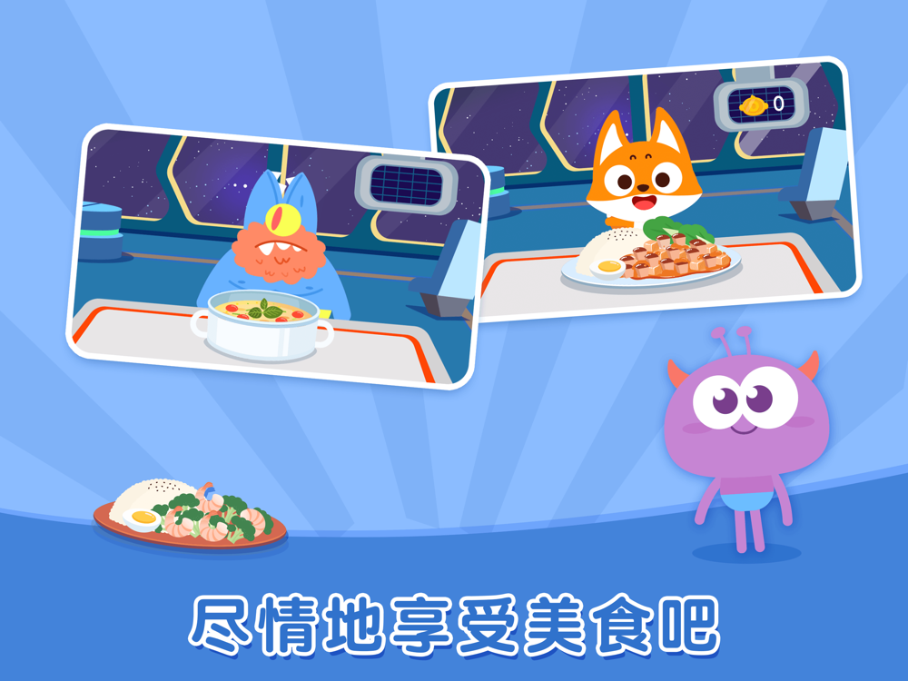 【美食订制】在这里可以接到不同星球传来的订餐消息,有的是单份,有的是套餐,有的是饮料甜点,小朋友,一定要按照订单信息给客人配餐,千万不要弄错哦!超级考验小朋友的记忆和敏锐洞察力以及执行力呢!