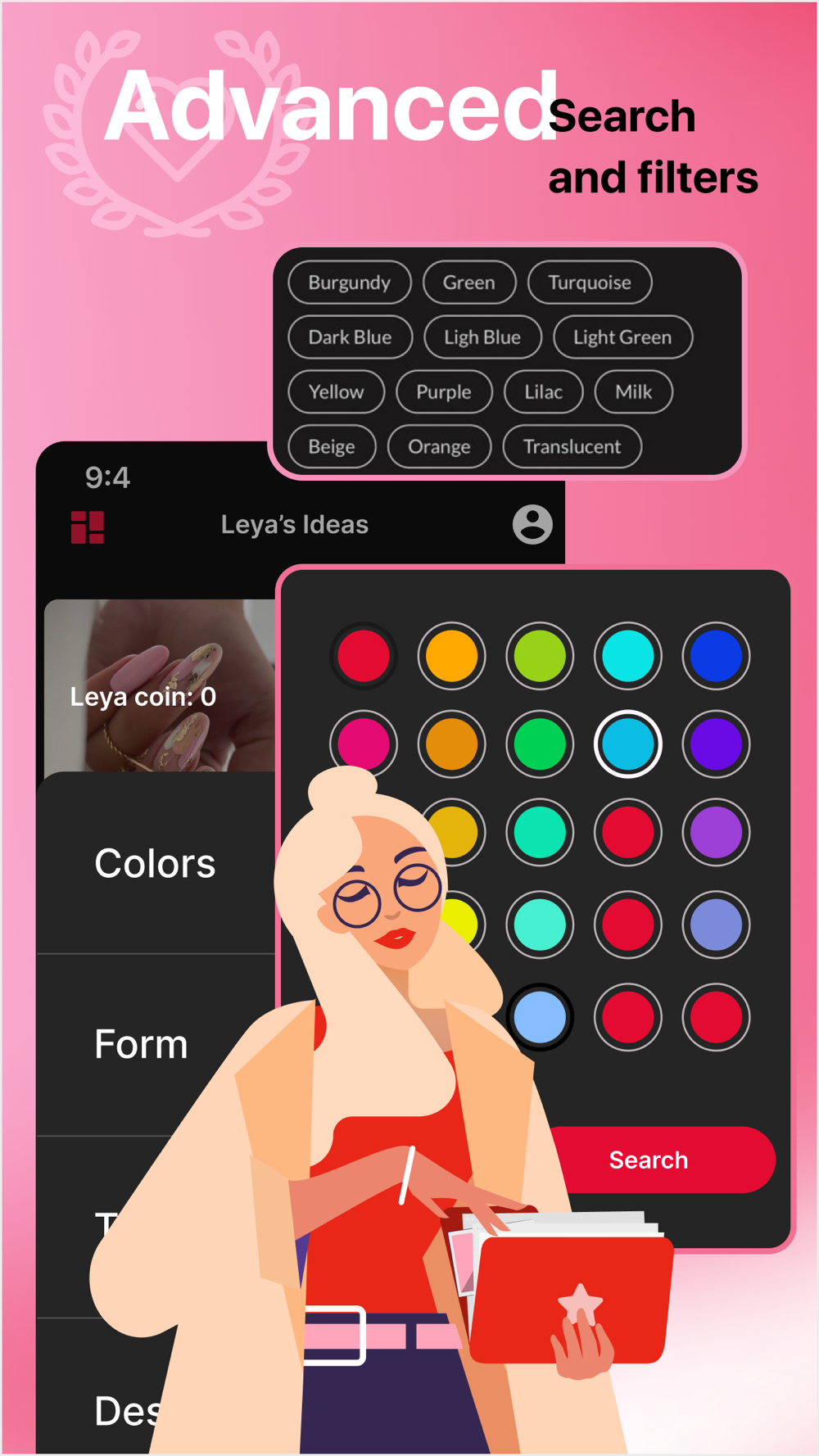 Leya takes care of your time and adds ideas every day so that you can find your manicure according to several criteria at the same time.