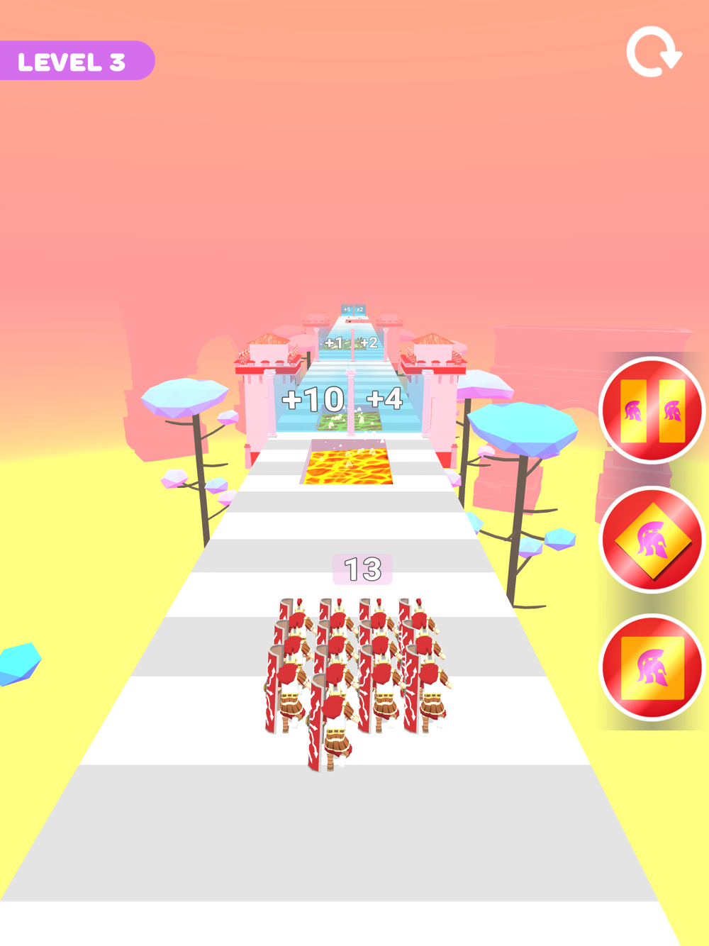 Control Spartan army and increase size. Change your shield formations to avoid the lava and arrows.