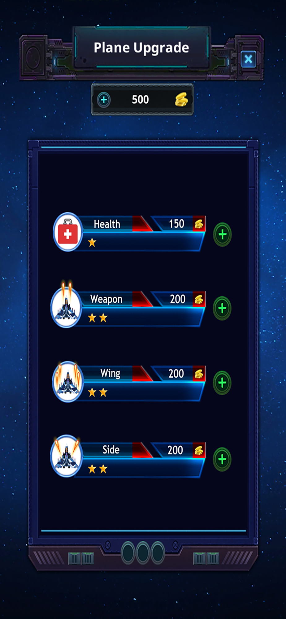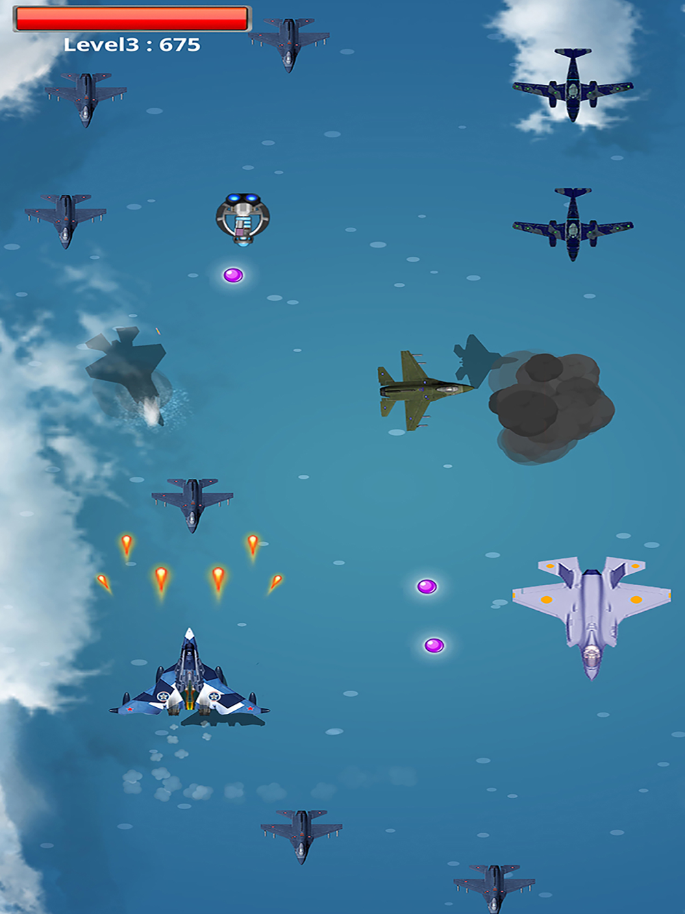 Every level has a powerful Boss for you to beat and the game the difficulty is gradually improved. Destroy your opponents and fight against ultimate Bosses and defeat them to advance to the next level! So get ready with your sky fighter and wipe out the enemies!