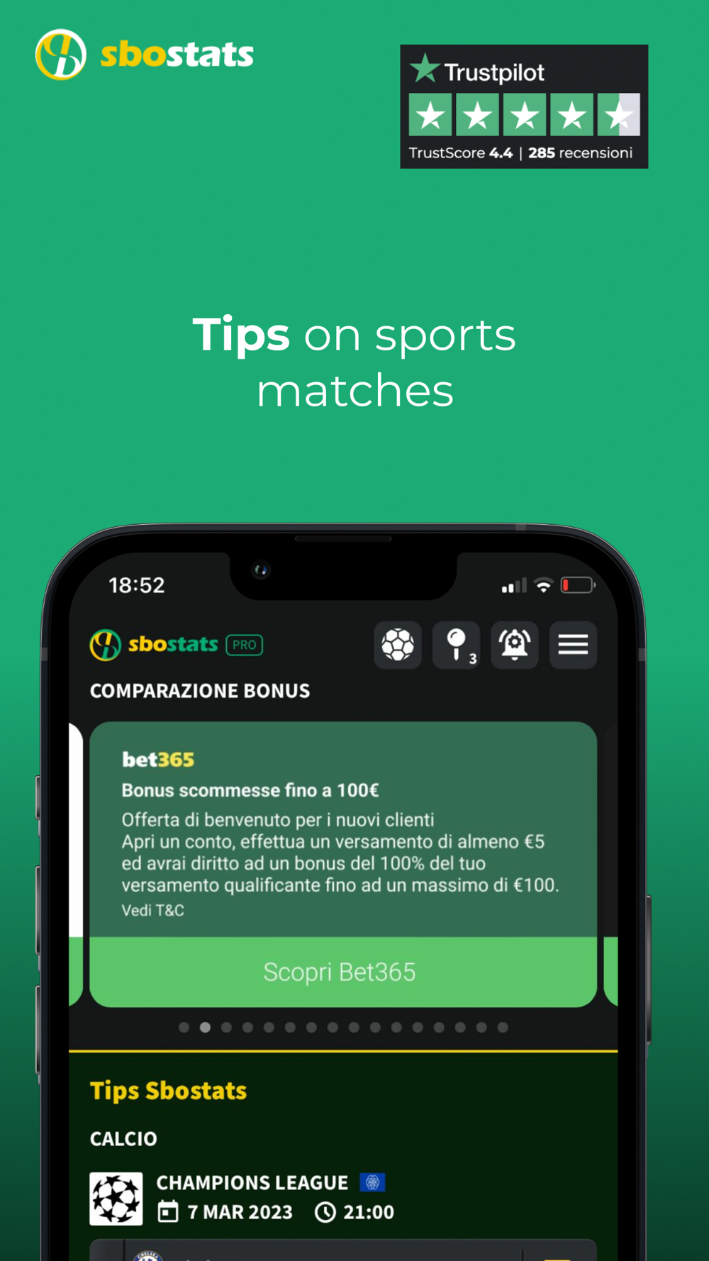 • Match Analysis, a powerful algorithm that instantly analyzes over 70 million data points collected in the Sbostats database and indicates the most likely markets of the week
