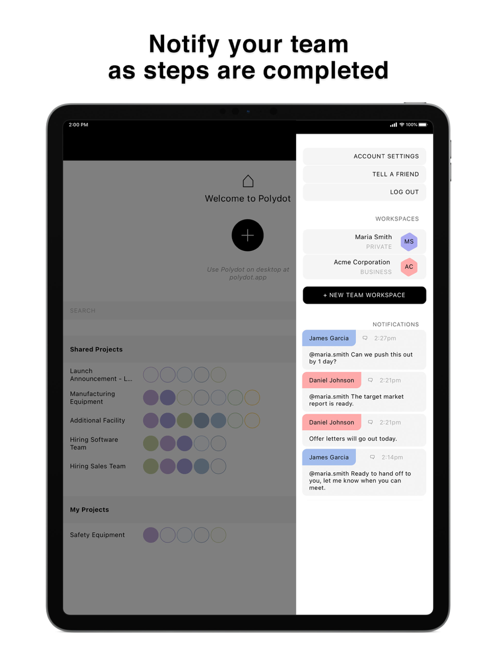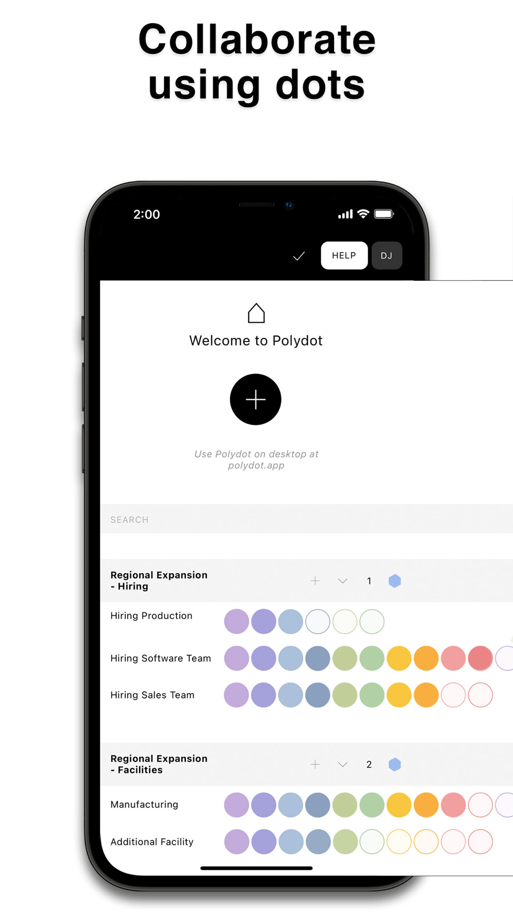 Polydot is a simple interface for helping you clarify steps and get things done with other people – including people that don’t have the app yet.