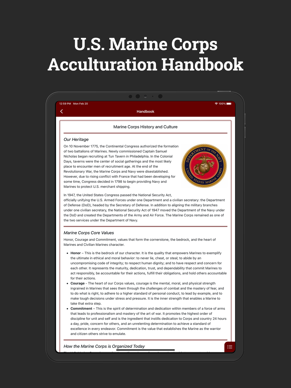 The DON AP app also provides definitions of lingo and abbreviations, as well as useful information on Fleet Orientation Days, protocol matters, and other topics. Additionally, it supplies training tools for rank recognition, a variety of instructional videos, and much more. PDF copies of the Navy and Marine Corps Civilian Acculturation handbooks are also available for ready reference.