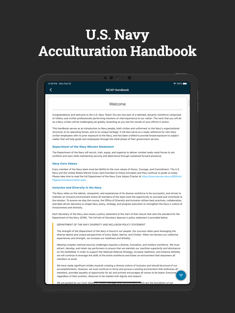 Whether you are new to the DON civilian team or a longtime employee, the DON AP app has what you need to immerse yourself in the proud culture and history of the Navy and Marine Corps. Download the app and get started today.