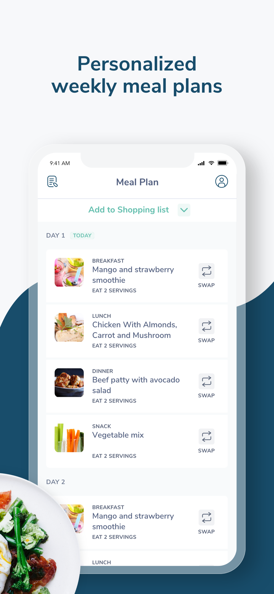 Delicious, easy-to-make recipes for breakfast, lunch, dinner & snacks. Automatically plan your entire week with meals that match your selected program. And with a single click, create an instant shopping list for your convenience.