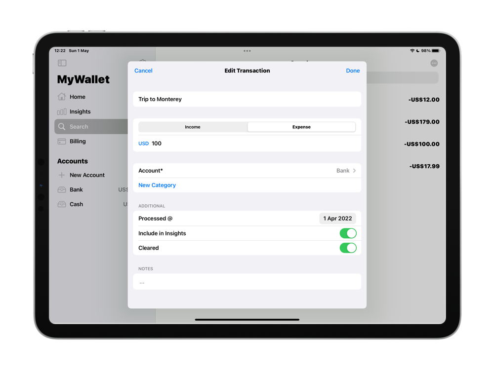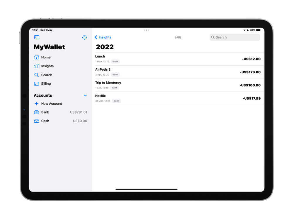 MyWallet helps you easily track your spending. Get full control of your money now!