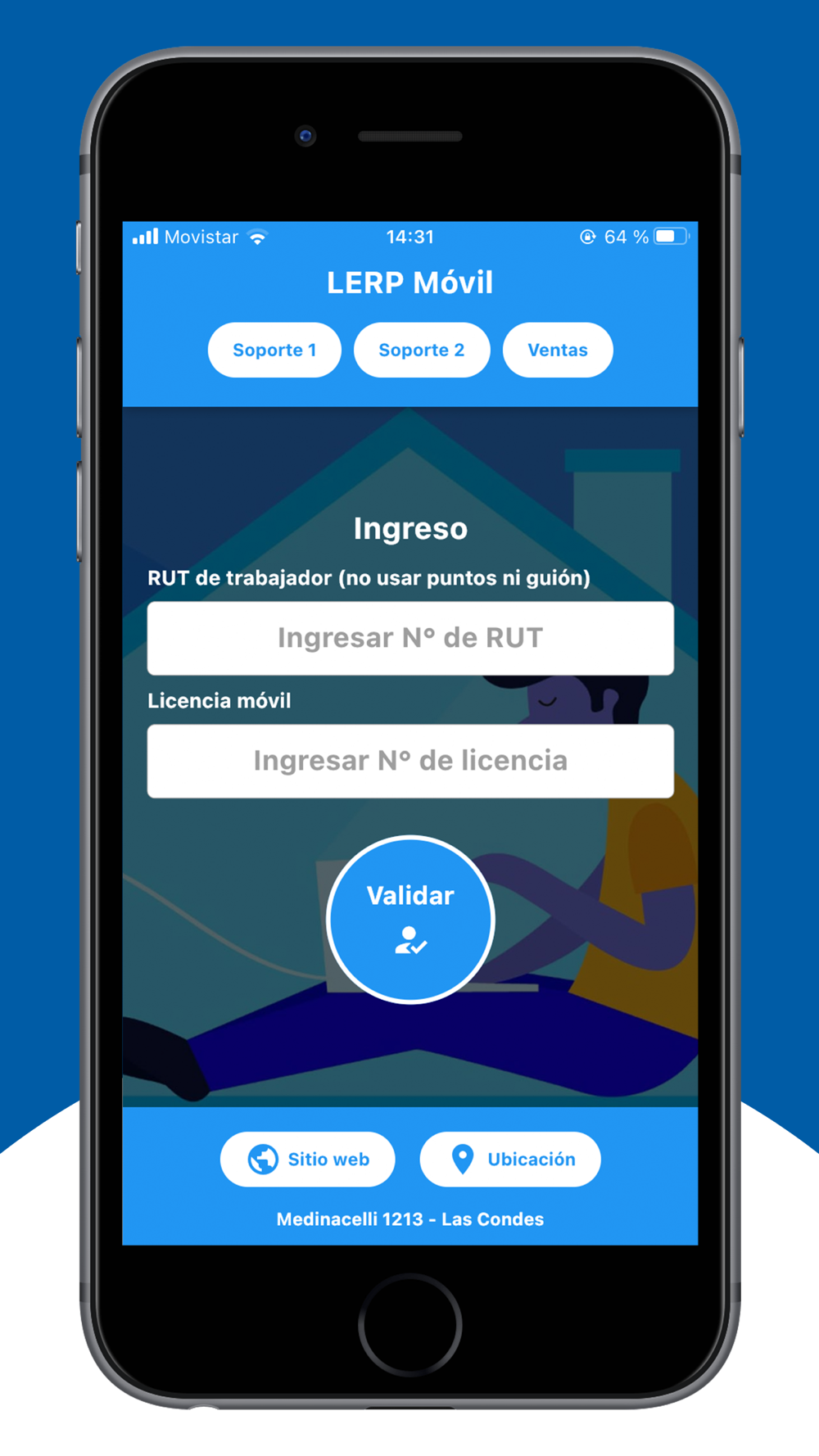 Se basa únicamente en que el trabajador ingrese su RUT y Licencia otorgada por Lerp para así hacer su marca de entrada o salida con su geolocalización y así controlar a los trabajadores con Teletrabajo o con trabajos fuera de las dependencias laborales.