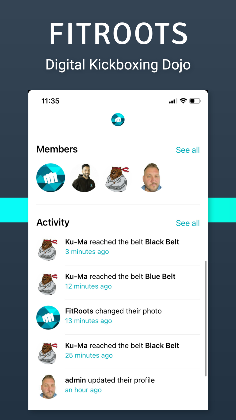 Join the Digital Dojo by FitRoots, a Kickboxer's dream! FitRoots is the only App of it's kind designed to help Kickboxers around the world increase their skills and technical prowess with the help of our automated Sensei Ku-Ma!