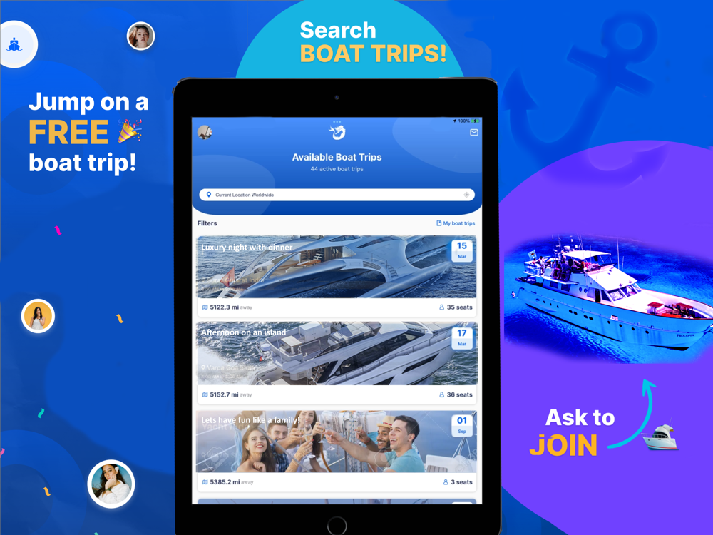 Apply on a boat trip of your choice and the next thing you know, you will be on a free boat trip!