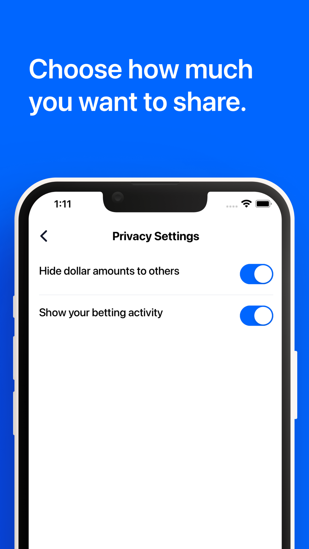 - Privacy - We never reveal your dollar values of your action to anyone except you. All betting amounts are displayed in terms of a user's standard wager (unit size).