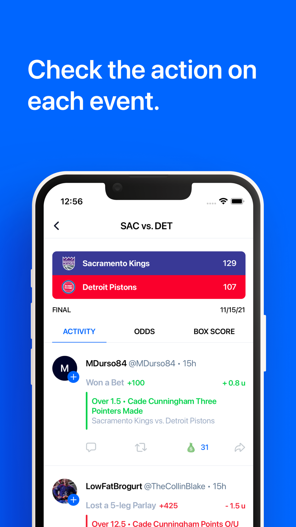 - Leaderboards - See which bettors are performing the best, follow them, read their content, and interact.