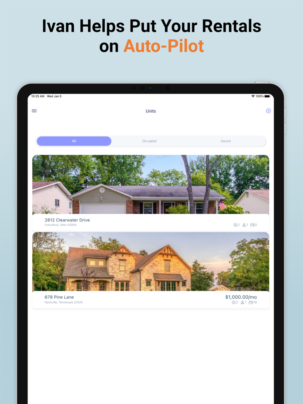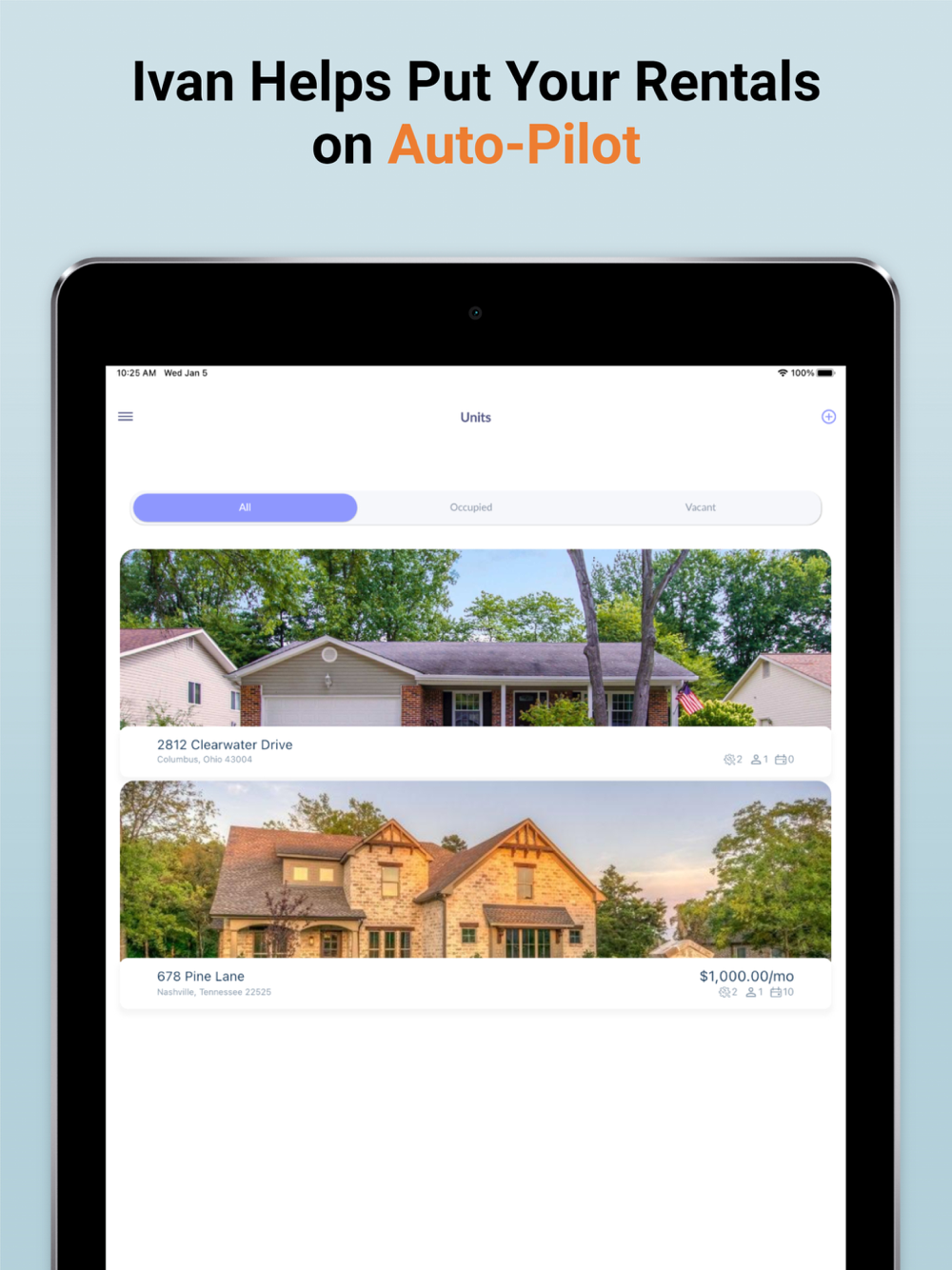 With core management features such as automated maintenance troubleshooting, automated payments, bookkeeping, contact management, and more, Ivan is sure to help you become a well-organized and highly profitable landlord.