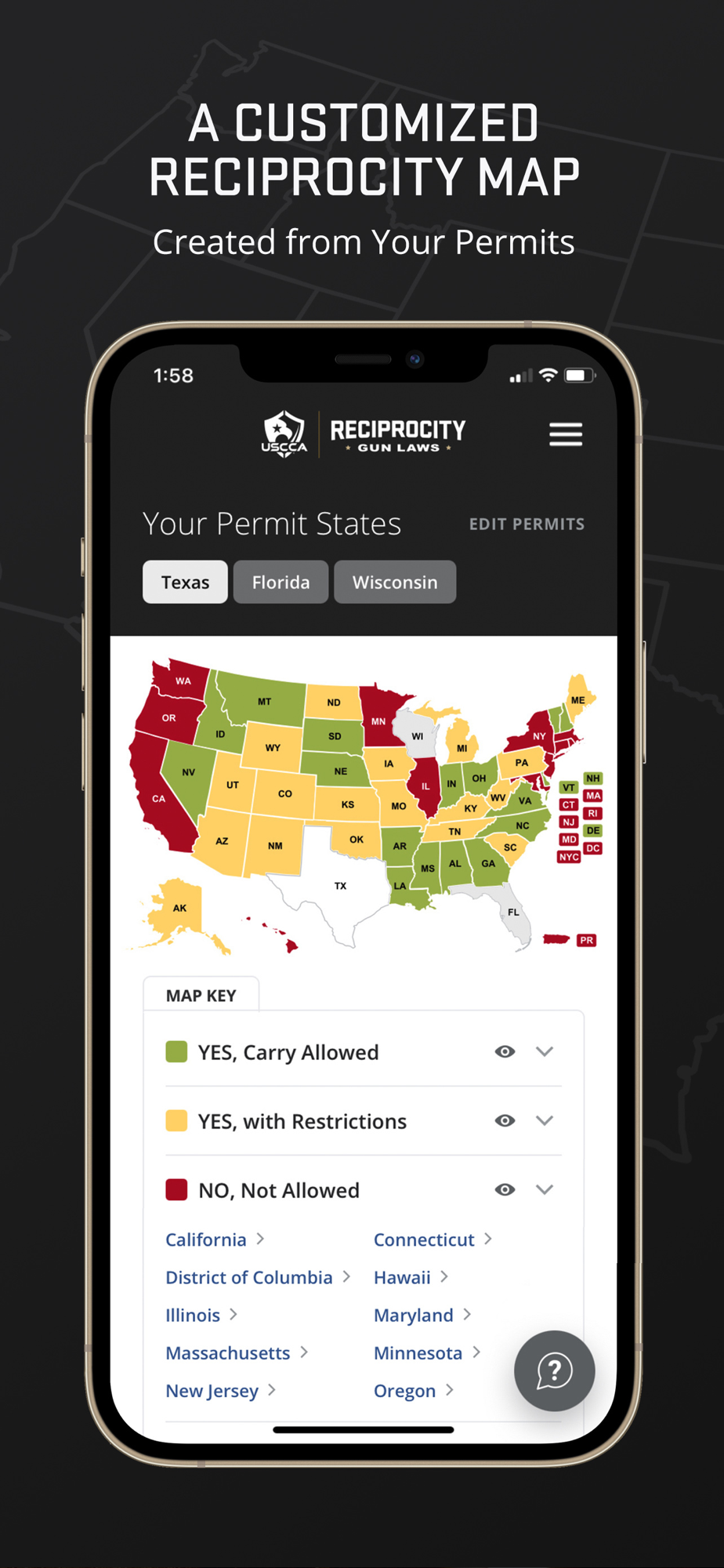 Use this FREE reciprocity map mobile app and be completely prepared.
