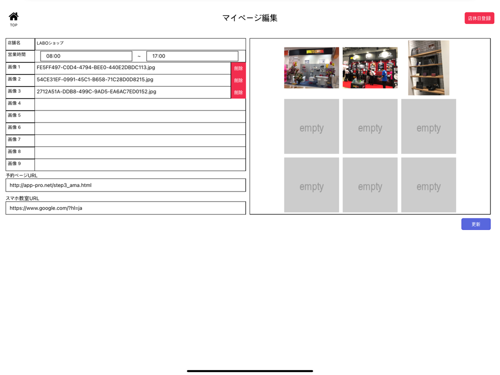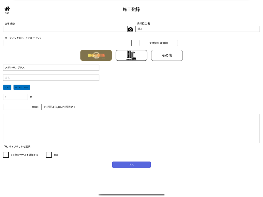 施工登録:来店されたお客様の施工情報の登録、履歴確認