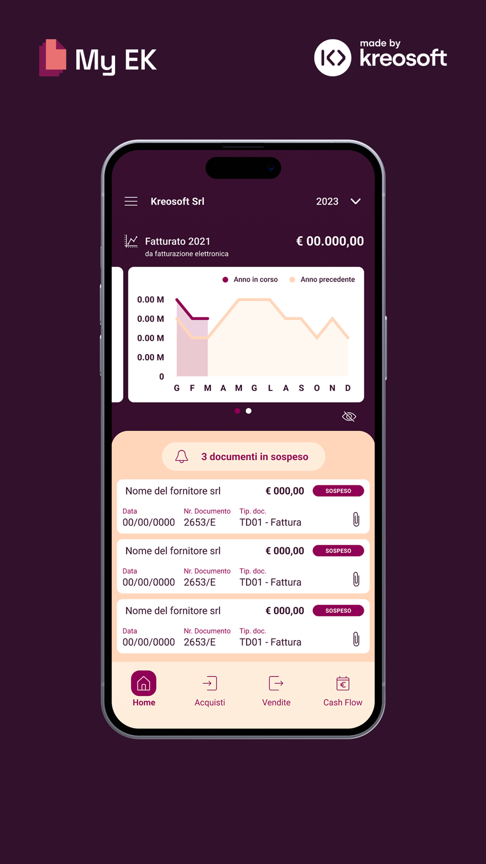 La missione di Kreosoft è quella di innovare il business dei nostri clienti con prodotti digitali moderni ed intuitivi, per questo abbiamo progettato My EK come soluzione che permetterà alle PMI di San Marino di gestire la propria attività in completa mobilità e in totale sicurezza, migliorando la collaborazione digitale con il proprio Commercialista.