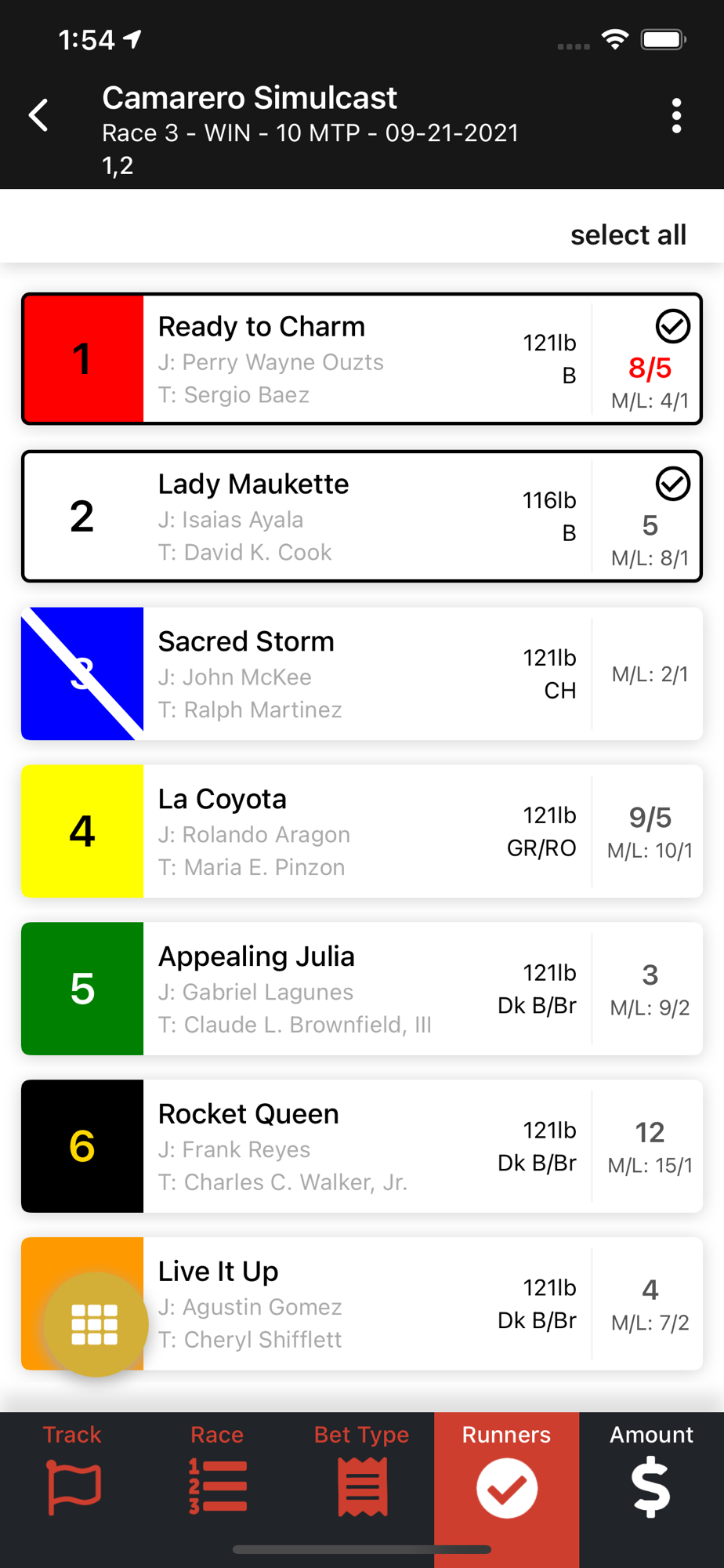 Hipodoromo Camarero's exclusive wagering system and is subject to all rules and regulations governed by the laws of Puerto Rico.