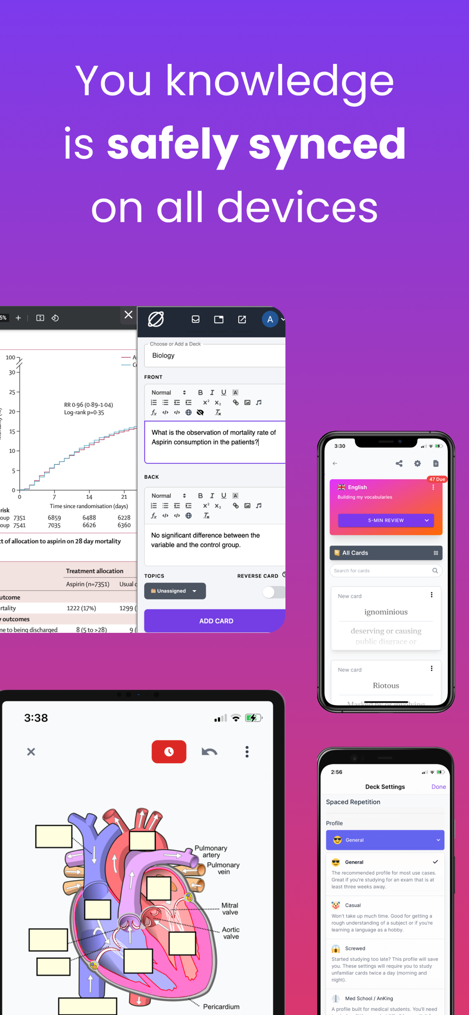Other tools like Anki and Quizlet have confusing settings and limited features. Zorbi makes it easy and fast to study for any exams, whether you're in medical school or high school.