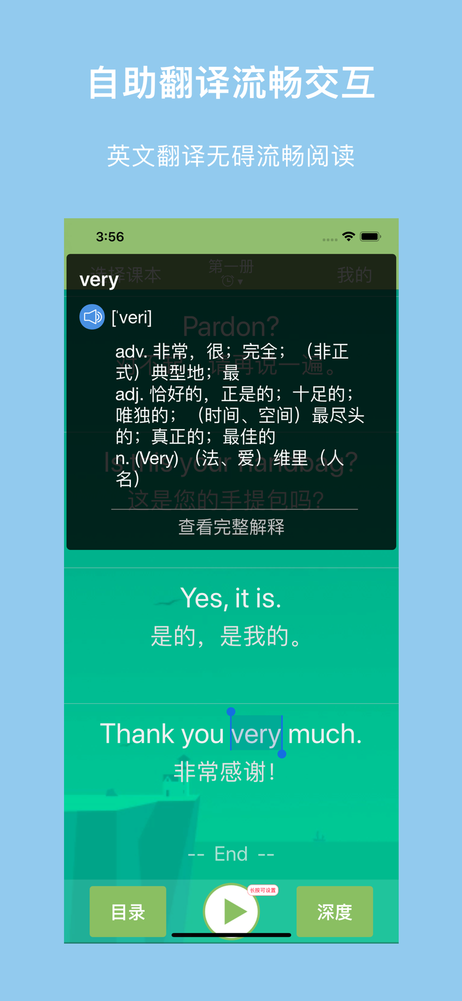 * 文章选词实时翻译,朗读语速可调,各种情况全满足;