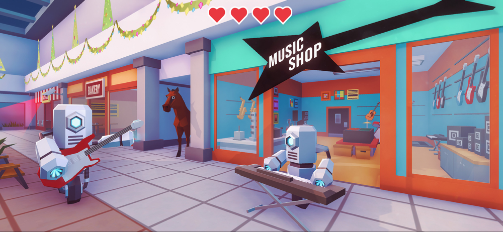 His tactic is simple - he is hidden in toilets and waiting for the night. When the shopping center is empty, his creeping journey to loot begins. Anyway he doesn’t know about security systems which are operating over the night. The Shopping center is full of patrolling security robots which are watching each corner. Those robots are looking funny and not so smart, but they have the best AI on the robotic market. Sometimes robots look like they live their own lives. They speak to each other with funny beeps and visualize what they have on their minds. When the robber is watching them for a while, he can see that they speak about luxury loot and secret rooms, providing some hints.