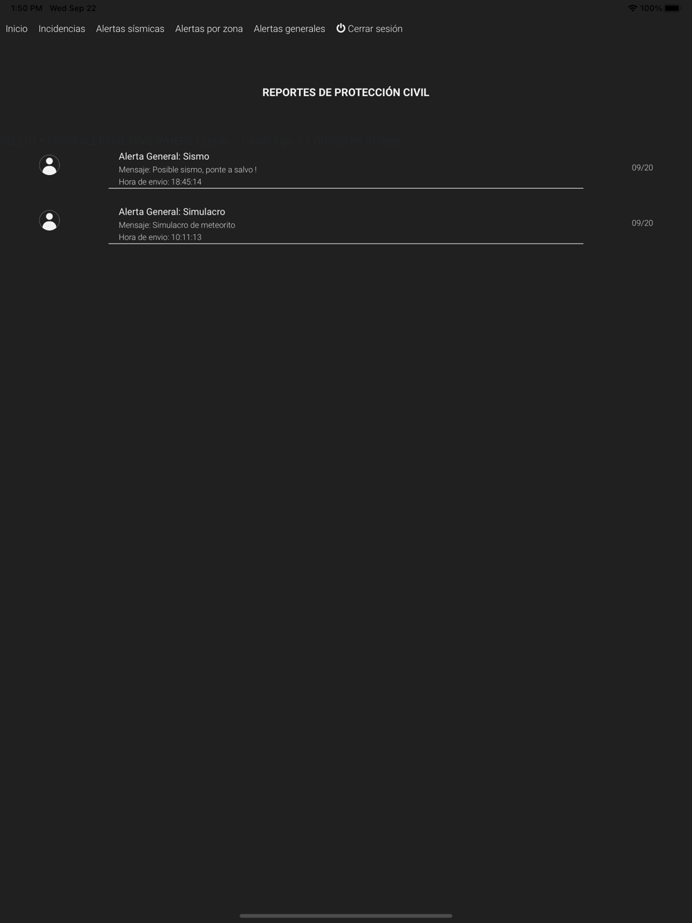* Alerta en caso de sismo