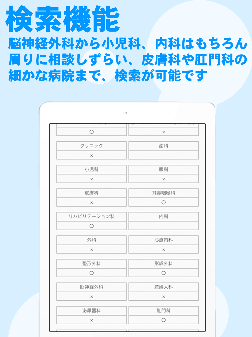 ・ Tap the "magnifying glass mark" to check hospital information in detail and search.