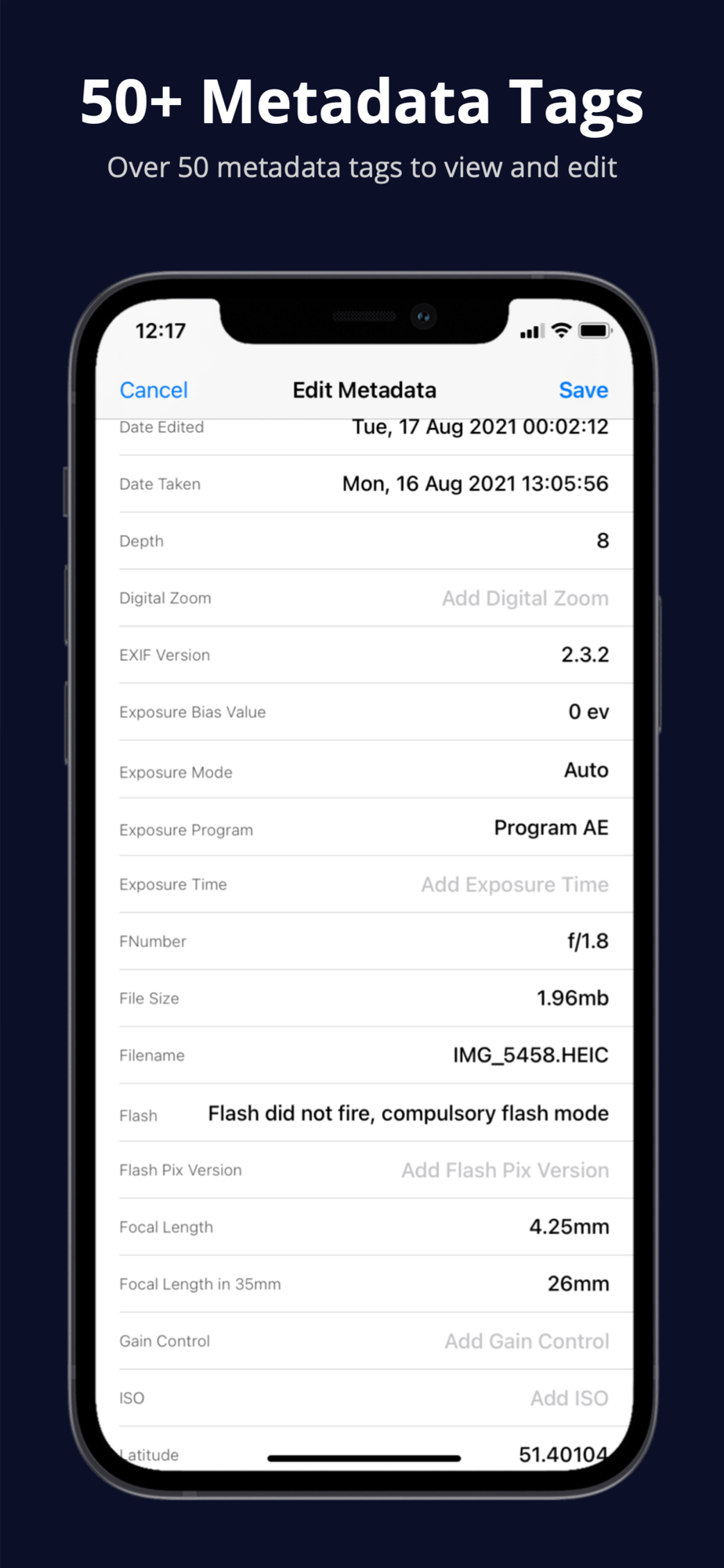 - View 50+ metadata tags for every photo.