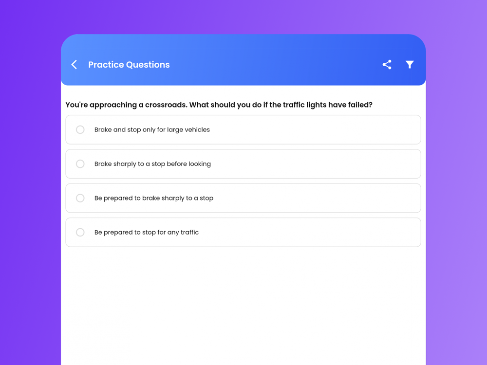 1. Practice Questions – more than 700 questions from DVSA revision bank that cover all critical subjects.