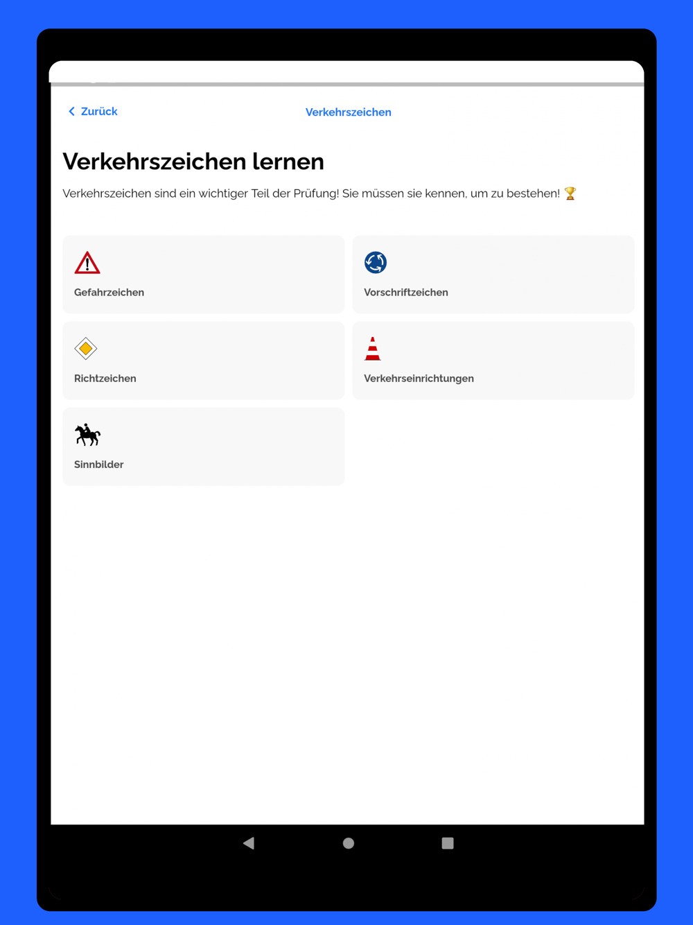 Führerschein Bestehen in Deutschland leicht gemacht. Ihre Theorieprüfung steht bevor und Sie haben Sorge, dass Sie nicht optimal vorbereitet sind? Unsere App ist der Führerschein Intensivkurs, den Sie brauchen, um den Theorietest in Deutschland im ersten Anlauf zu bestehen. Arbeiten Sie sich spielerisch durch sämtliche Fragen des offiziellen deutschen Fragenkatalogs für 2021 und lernen Sie die Bedeutung sämtlicher Verkehrsschilder im Handumdrehen. Zusätzlich bietet unsere App Ihnen die Möglichkeit einen Übungstest zu absolvieren, der mittels eines Countdowns dieselben Testbedingungen suggeriert wie die Führerscheinprüfung in der Fahrschule. In unserer Führerschein Handy App können Sie den Test so oft wiederholen wie Sie möchten und anschließend anhand des Testverzeichnisses erkennen, bei welchen Fragen des Führerscheintests Sie noch Hilfe benötigen. Wenn Sie zusätzliche Unterstützung und nützliche Tipps zum Führerschein in Deutschland möchten, können Sie jederzeit zur Premium Version unserer Führerschein App wechseln, wo Sie mit Hilfe unserer Führerschein Videokurse optimal auf ihre Theorieprüfung vorbereitet werden.