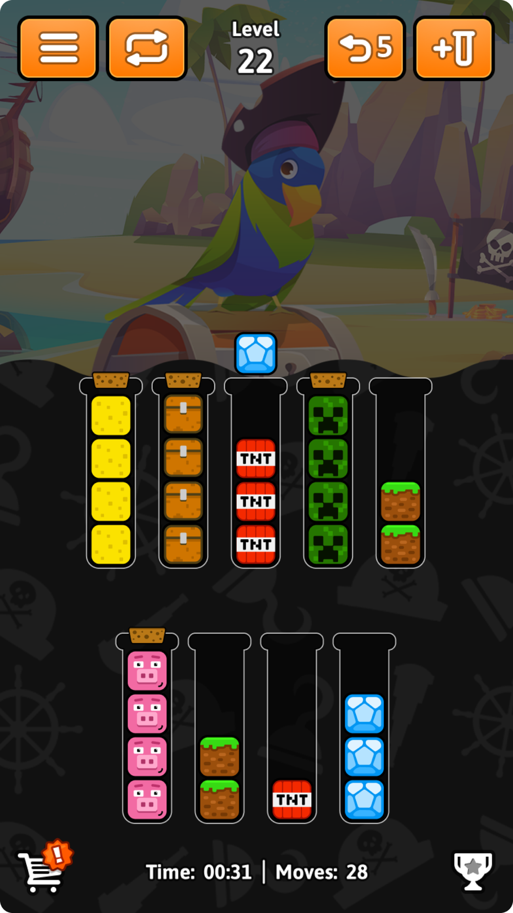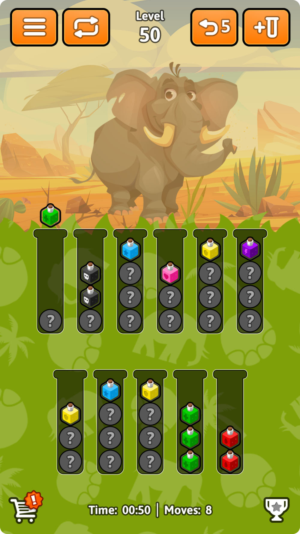 Be cautious about getting stuck, but if you do, you can always take a step back or restart the level at any time. And if a level is too difficult, you can use an extra vial.