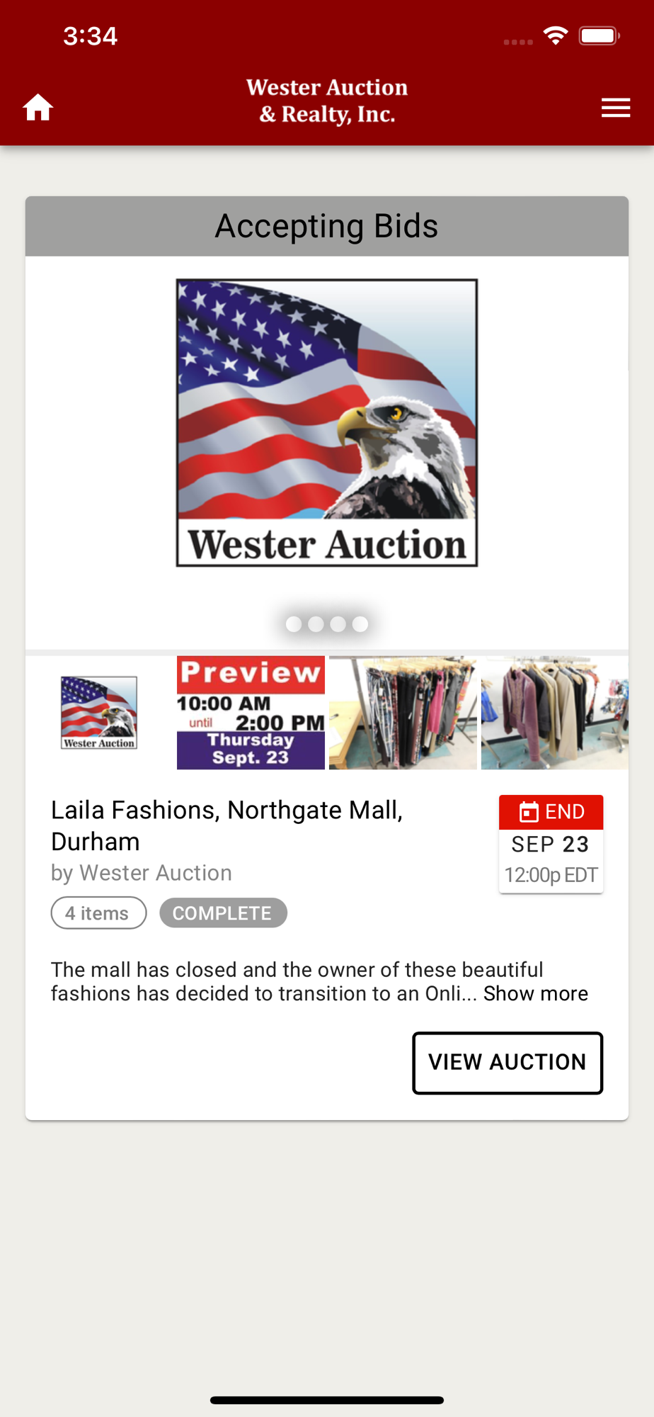 This dynamic app allows you to (1) stay informed about our upcoming auctions; (2) view items that interest you; (3) get notifications when you've been outbid; (4) bid no matter where you are located (or set and forget your maximum bid to let our platform automatically bid the lowest possible winning bid for you). This is the go-to-source for up-to-the-minute information on all of our auctions.