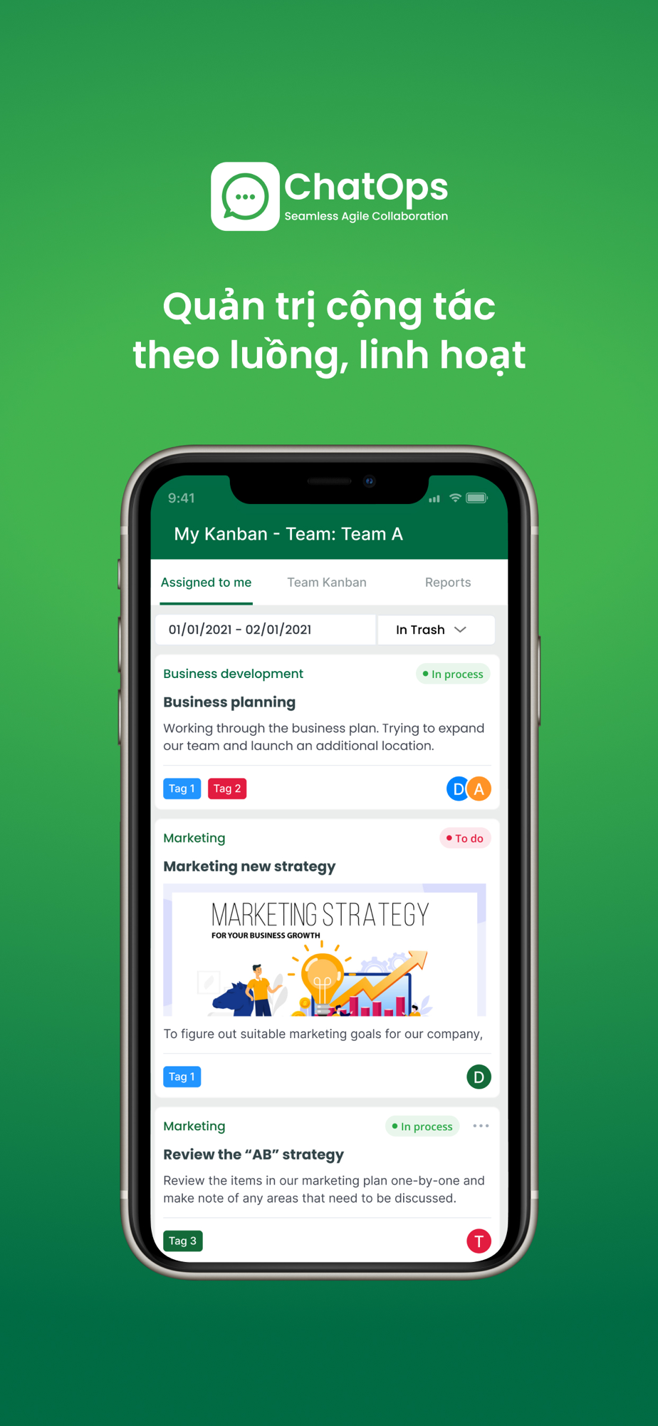 + Quản lý đầu việc, task, dự án theo bảng Kanban, trực quan và dễ dàng