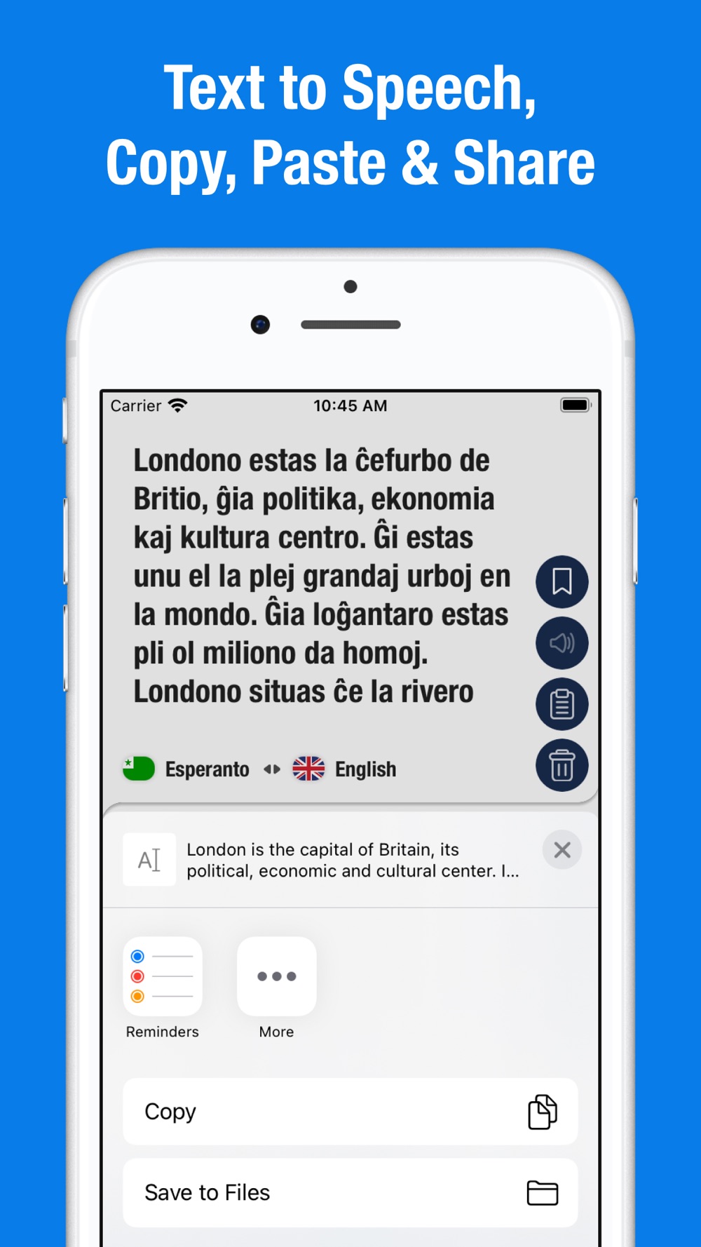 It is a translation tool that helps you break down language barriers. Excellent app for all who makes the first steps in learning Esperanto. Intuitive interface, easy navigation, quick result. Begin conversations confidently!