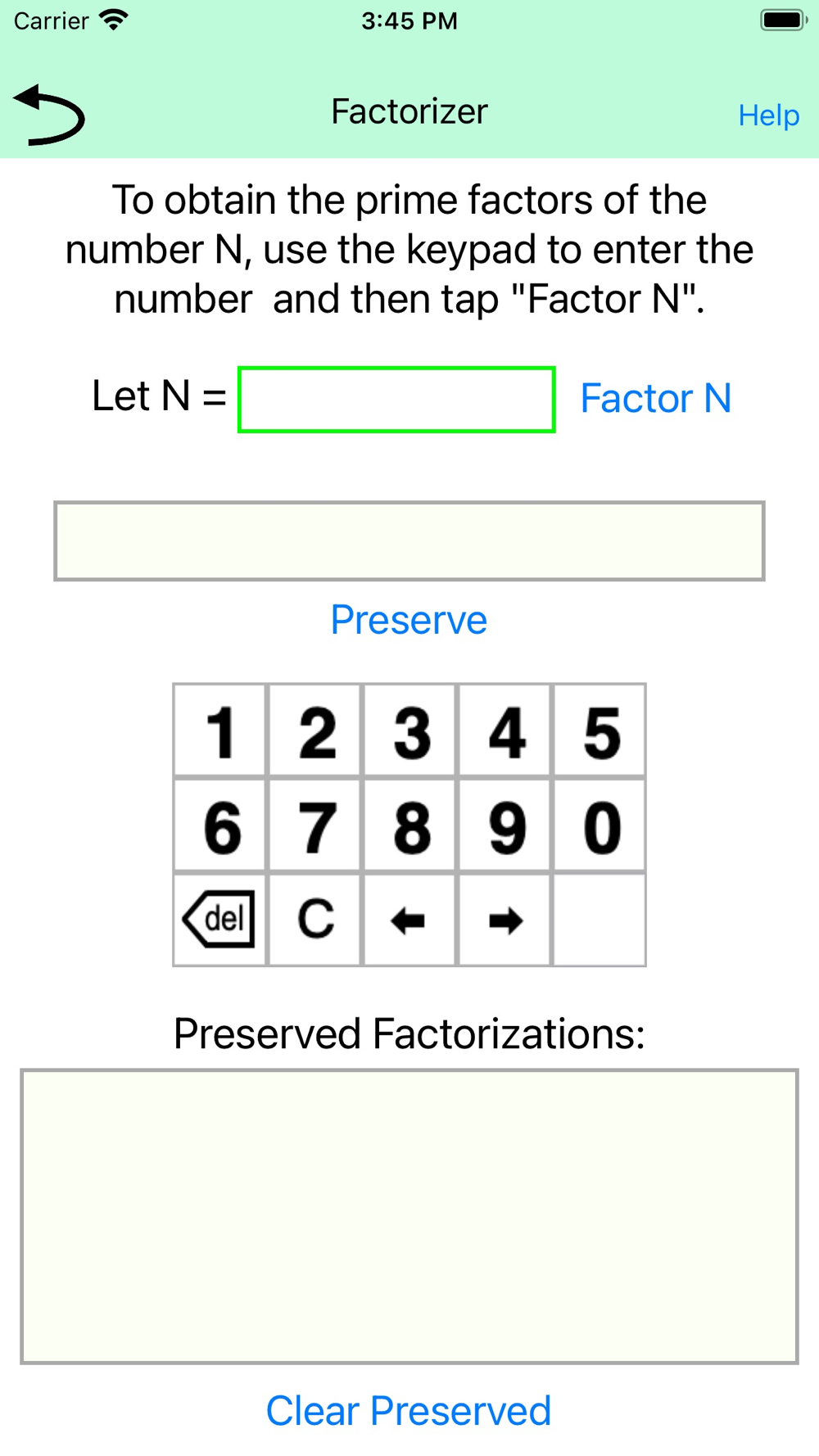 The app allows you to work with numbers in the form of fractions as well as in decimal form. It comes with a built-in Calculator and a Factorizer tool (which will factor any positive integer that can be represented by 10 digits or less into its prime factors).