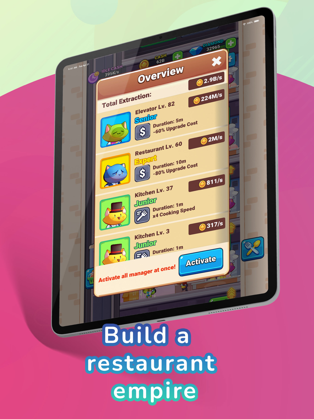 No tapping like in the other restaurant games & clicker games. With this food cat simulator, you can build an idle empire easily!