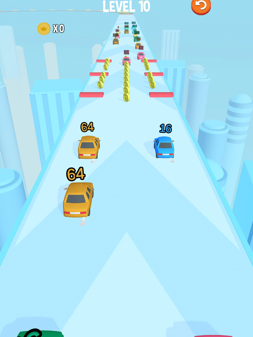 Hit the cars with the number as your car's. Merge them to get through the traffic.