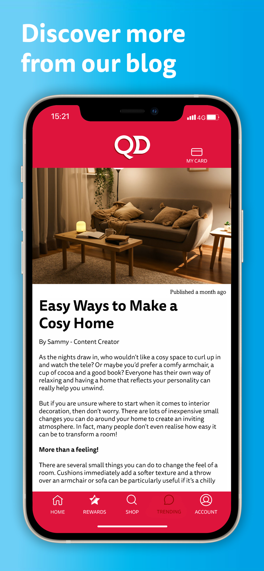 QD Stores is an independent family-owned business and we are passionate to offer you the best quality products at the best prices with value guaranteed. Download our Reward Card app to manage your membership, access a digital version of your card to use in-store, keep all your receipts in one place and keep track of your exclusive offers. You can also easily access our online shop and blog for our latest news and trends. QD offers an extensive selection of ranges, from homeware to furniture, pets to gardening - and so much more. We are sure you’ll find what you need at the best price possible. Download the app now and make the most of your next shop with us.