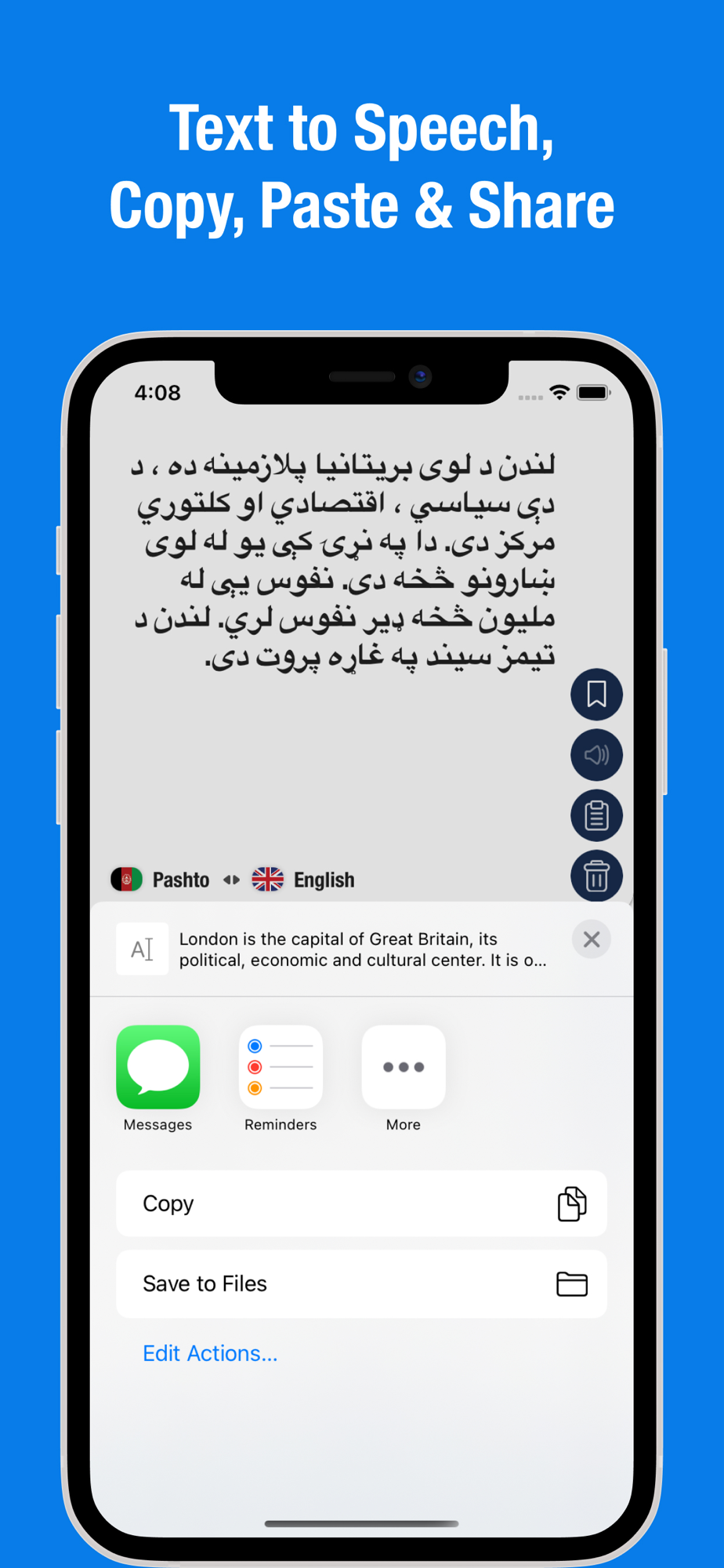 It is a translation tool that helps you break down language barriers. Excellent app for all who makes the first steps in learning Pashto. Intuitive interface, easy navigation, quick result. Begin conversations confidently!