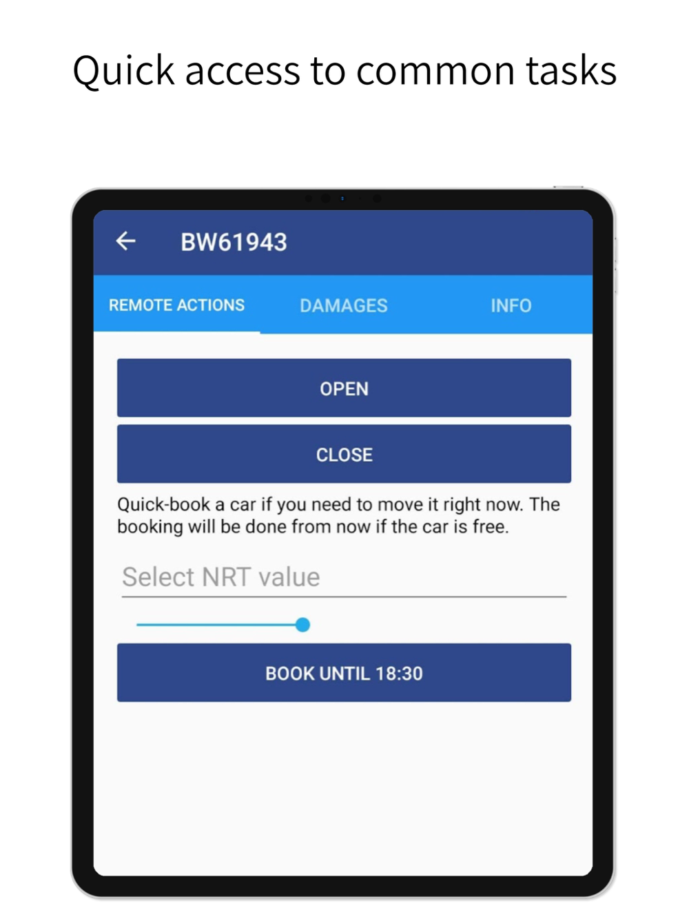 Customers of Netigrate Car sharing platform can use this app to perform maintenance tasks on the cars.