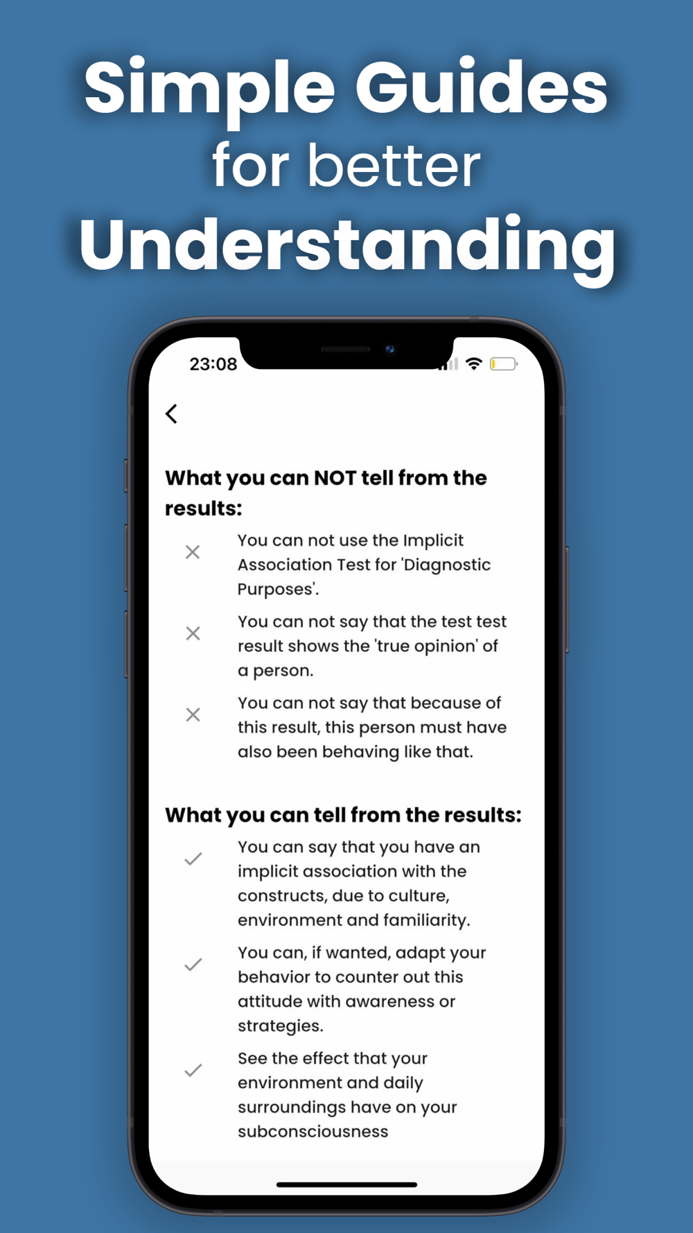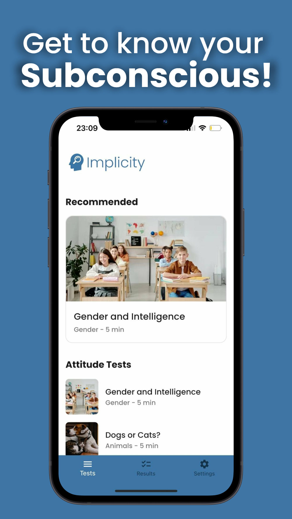 We have various implicit - Subconscious Tests for you in our app like gender & intelligence, Attitude on disabled people, Islam & Terrorism, Attitude on homosexuality, and much more according to your needs. These tests & brain exercises will improve memory and memory training.