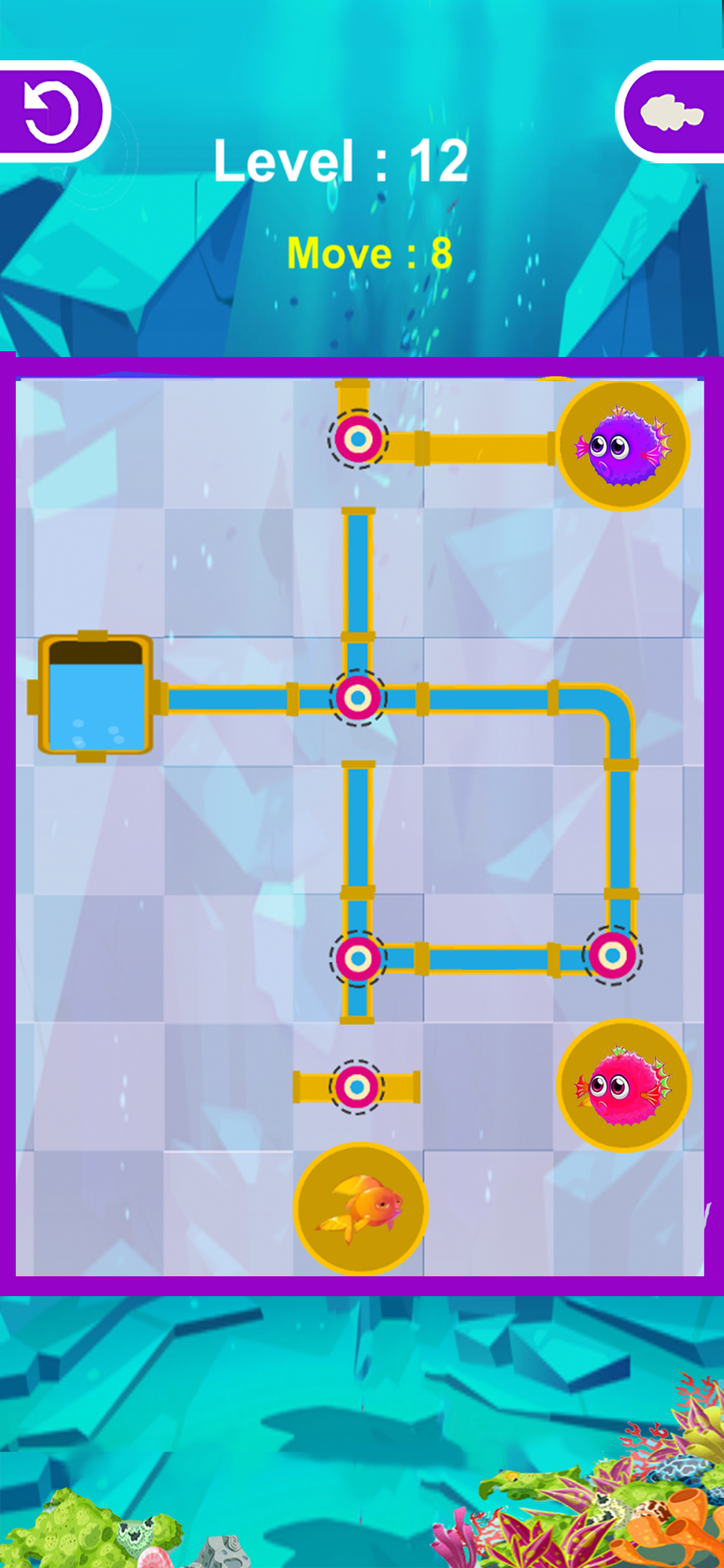 Fun filled puzzle game where you have to save the fish by connect pipes .
