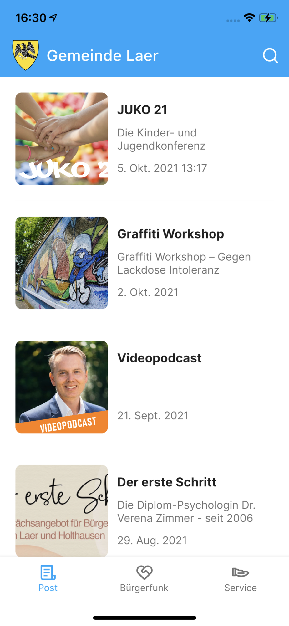 Mit dem integrierten Bürgerfunk ensteht eine neue Community für unsere Gemeinde. Alle haben die Möglichkeit Mitteilungen, die für alle von Interesse sein könnten, in den Bürgerfunk einzustellen. Ob Nachbarschaftshilfe, Jobs, Projekte, Freizeitangebote oder Veranstaltungsinfos von Vereinen. Senden Sie ein Bild oder Video und einen Text und schnell haben Sie eine Mitteilung erstellt.