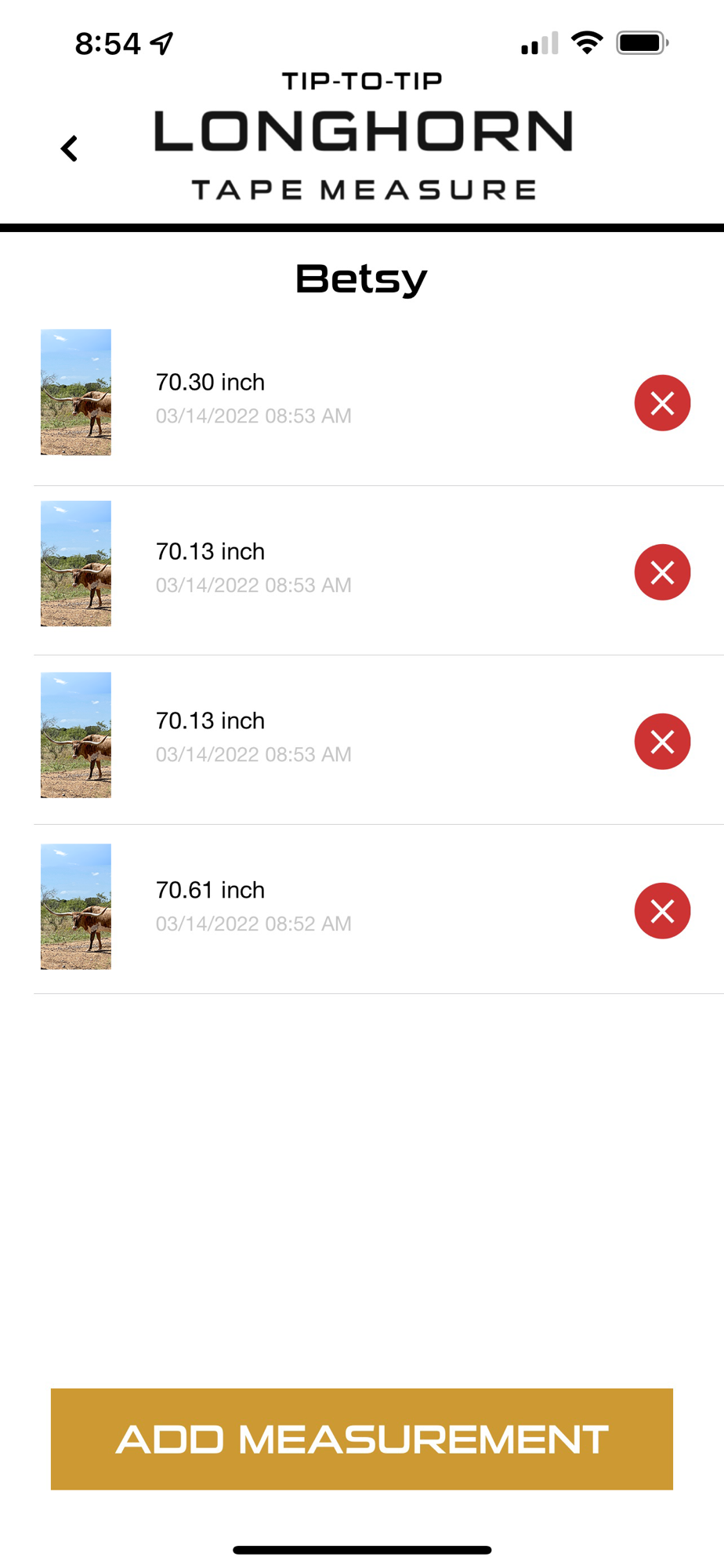 TTT Longhorn Tape Measure app is a brand new, revolutionary app that will instantly make any Texas Longhorn breeder more productive. Texas Longhorns are valued by their horns, not their weight. This APP is the ONE and ONLY Tape Measure APP on the Market. Tip to Tip Longhorn Tape Measure is fast and accurate and has a simple guide to getting very accurate in seconds. This app can be used in a number of valuable settings and allow folks to see their herds growth rates. The APP also allows you to keep your records and store information and measurement history in the cloud. This is very valuable with pedigrees and the HORNS databases. The APP will save ranchers and breeders time and money by not having to corral the cow into a chute and have two or more ranch hands measure the horns with a tape measure. More importantly, the Tip to Tip Longhorn Tape Measure app will take unnecessary stress off the animals or possible horn breakage by resistance of being forced in a chute. The Tip to Tip Longhorn Tape Measure app allows the cow to stay in their environment and not disturbed to keep everyone safe and happy!