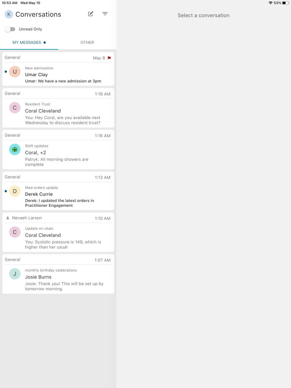 * faster response times between healthcare providers through resident-specific or general conversations.